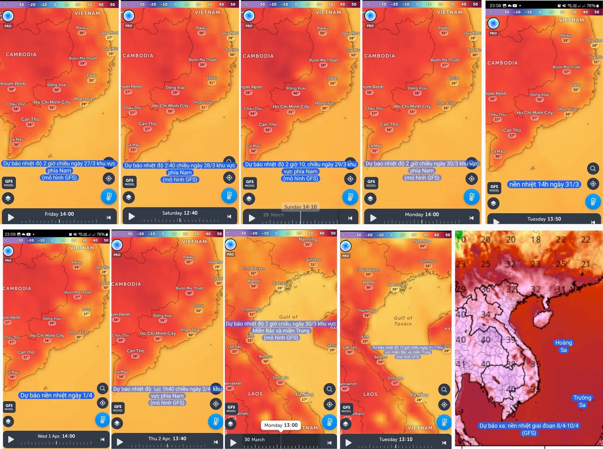 Ở góc độ dự báo xa, mô hình GFS cho thấy khả năng cao (khoảng 70%) xuất hiện một đợt nắng nóng diện rộng kéo dài 4 ngày, từ khoảng 7 hoặc 8/4 đến 11/4. Đợt này có thể gây hiện tượng “om nhiệt”, làm nền nhiệt tại Đồng bằng Bắc Bộ, miền Trung và miền Nam tăng lên mức 37-38°C, thậm chí cao hơn.