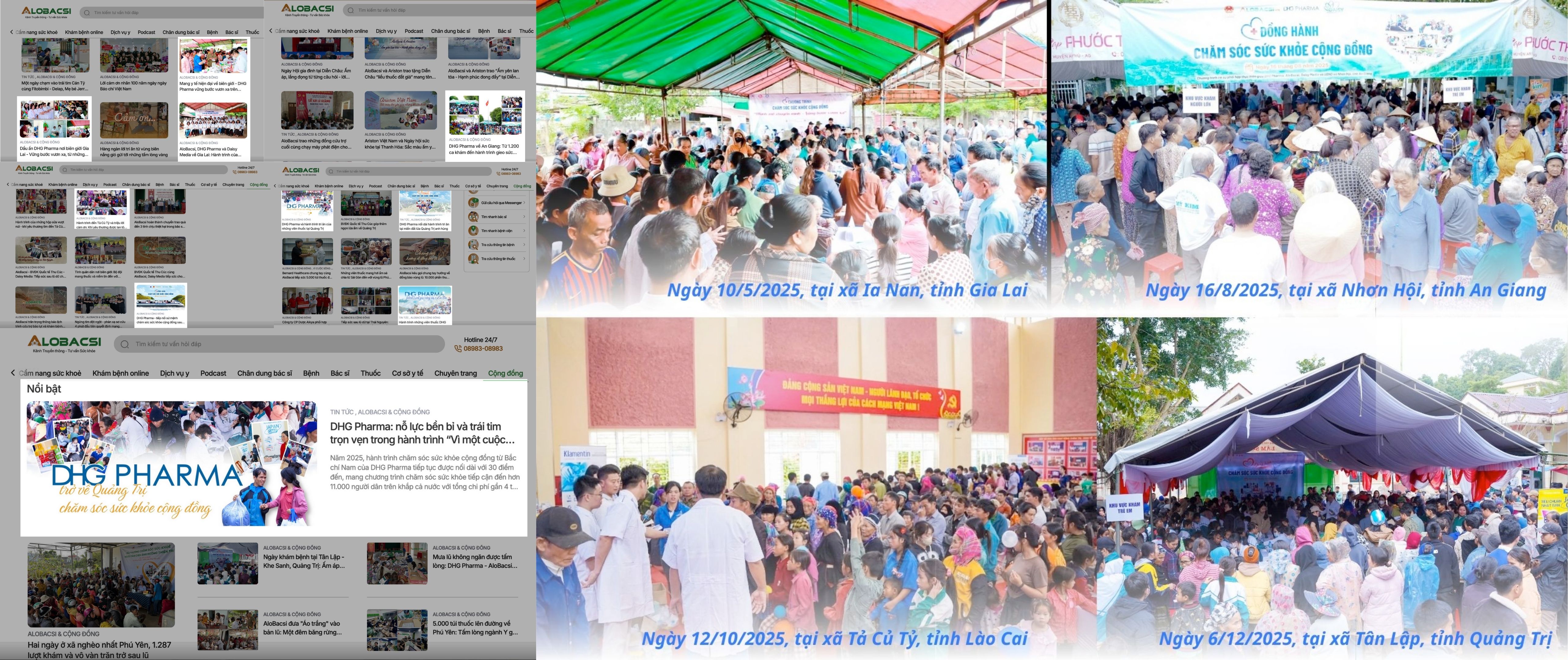 - Song song với công tác cứu trợ khẩn cấp, năm 2025, AloBacsi tiếp tục đồng hành bền bỉ cùng DHG Pharma và Daisy Media, phối hợp với các sở, ban ngành địa phương thực hiện 4 chuyến chăm sóc sức khỏe cộng đồng, khám bệnh - phát thuốc cho 4.700 bà con tại Gia Lai, An Giang, Lào Cai và Quảng Trị, với mô hình ngày càng hoàn thiện: từ phòng khám nha khoa đạt chuẩn, đến xe X-quang lưu động ngay tại địa phương.
