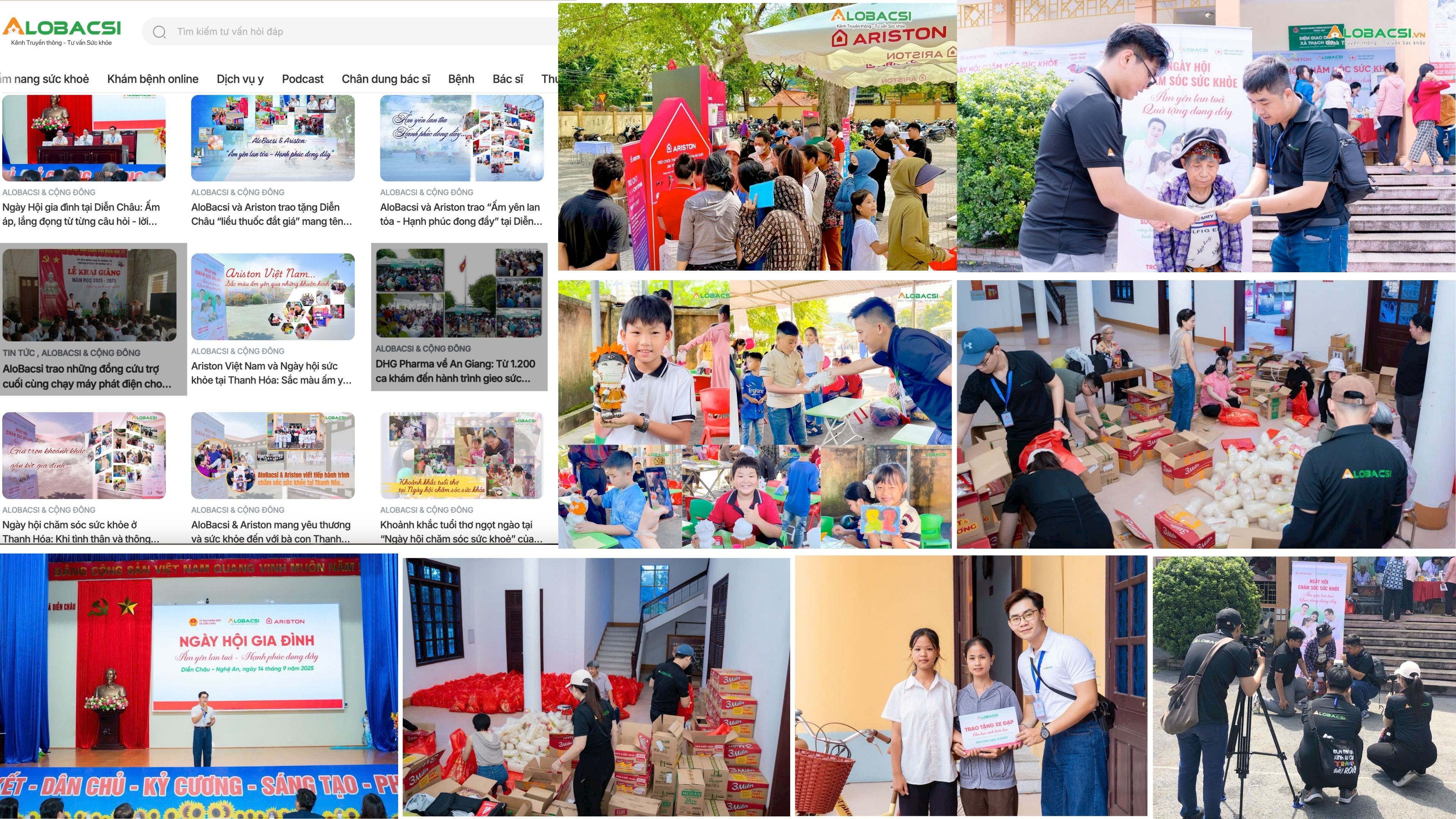 - Cũng trong năm này, AloBacsi tiếp tục mở rộng mô hình chăm sóc sức khỏe gắn với đời sống dân sinh khi phối hợp cùng Ariston triển khai chuỗi “Ngày hội chăm sóc sức khỏe” tại Triệu Sơn, Thạch Lập (Thanh Hóa) và Diễn Châu (Nghệ An). Hơn 1.500 lượt người dân được thăm khám, phát thuốc; trên 1.500 phần quà nhu yếu phẩm, 35 bình nước nóng Ariston, 5 xe đạp cho học sinh hiếu học, 10 suất tiền mặt hỗ trợ hộ khó khăn, cùng hàng nghìn quà tặng từ gian hàng Ariston được trao tận tay người dân.