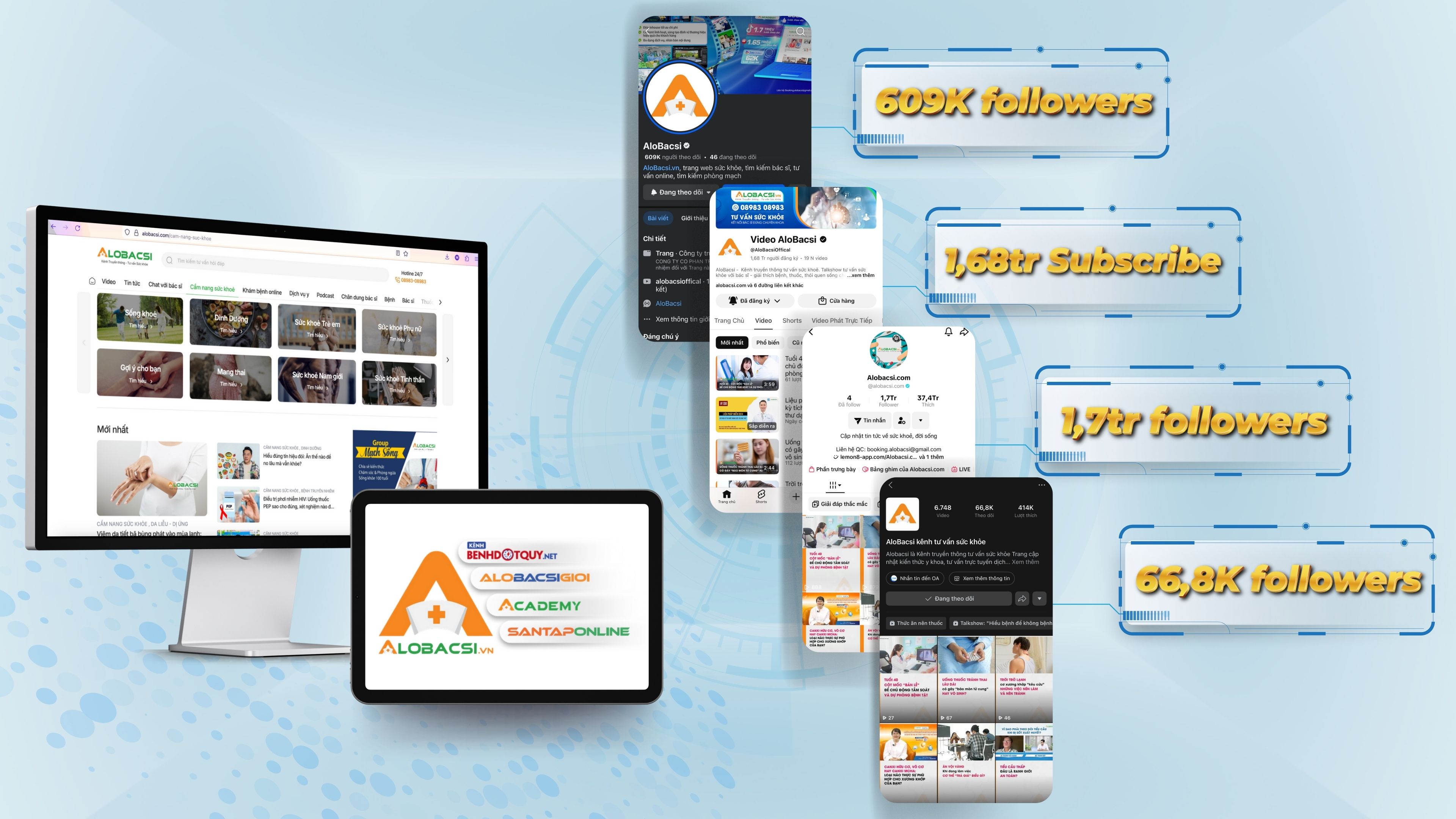 Trong khi đó, TikTok AloBacsi tiếp tục tăng trưởng ổn định, đạt 1,7 triệu người theo dõi, 141,2 triệu lượt xem cho thấy khả năng thích ứng nhanh của AloBacsi với xu hướng tiêu thụ nội dung mới, trẻ hóa cách tiếp cận nhưng vẫn giữ vững chuẩn mực chuyên môn.