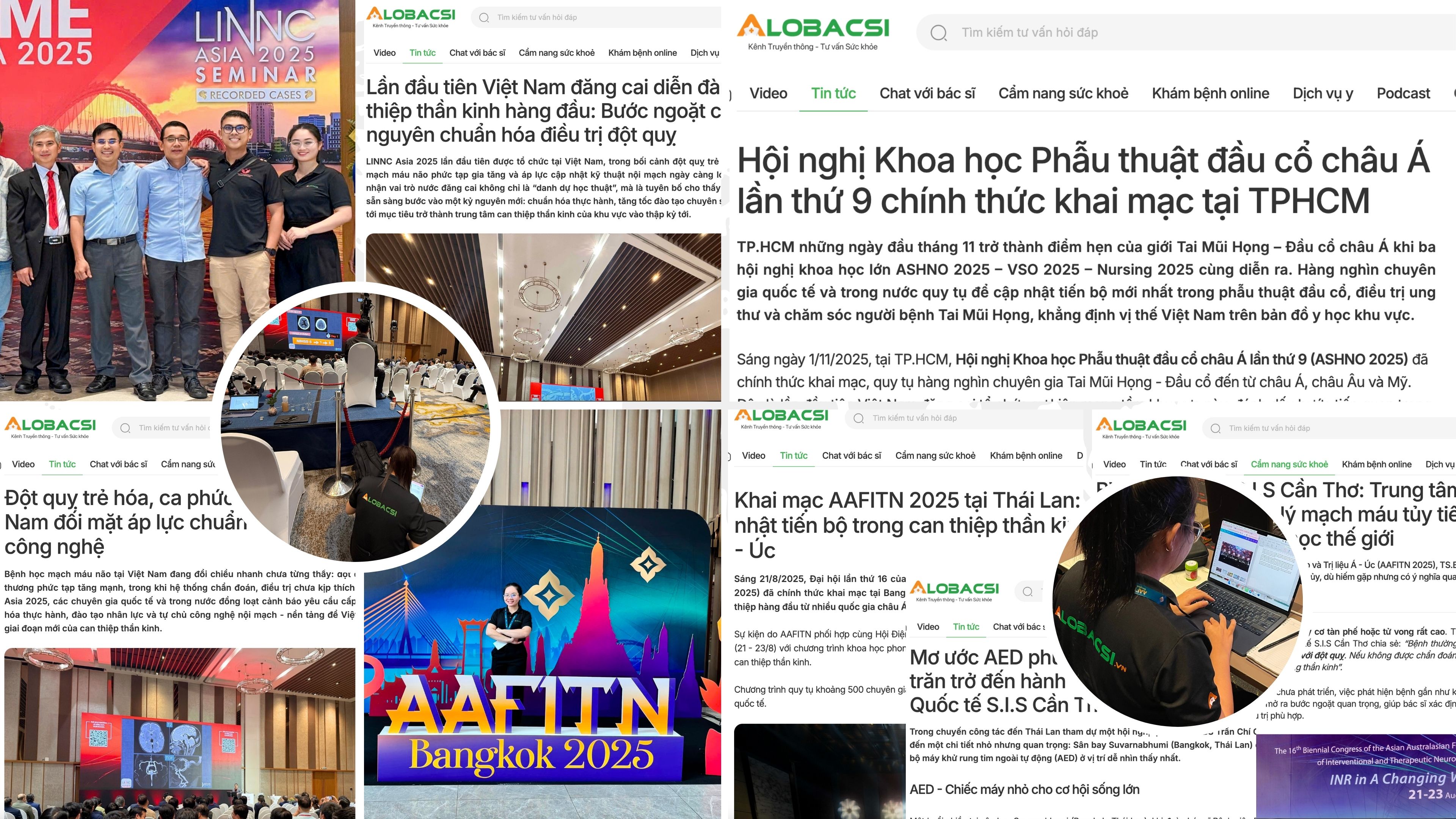 Ở tầm quốc tế, AloBacsi cũng hiện diện và đưa tin tại nhiều sự kiện lớn như: LINNC Asia 2025 (lần đầu tiên tổ chức tại Việt Nam), AAFITN 2025 - Hội nghị cập nhật tiến bộ trong can thiệp thần kinh châu Á - Úc tại Bangkok (Thái Lan), Hội nghị Khoa học Phẫu thuật Đầu - Cổ châu Á lần thứ 9 (ASHNO 2025)…