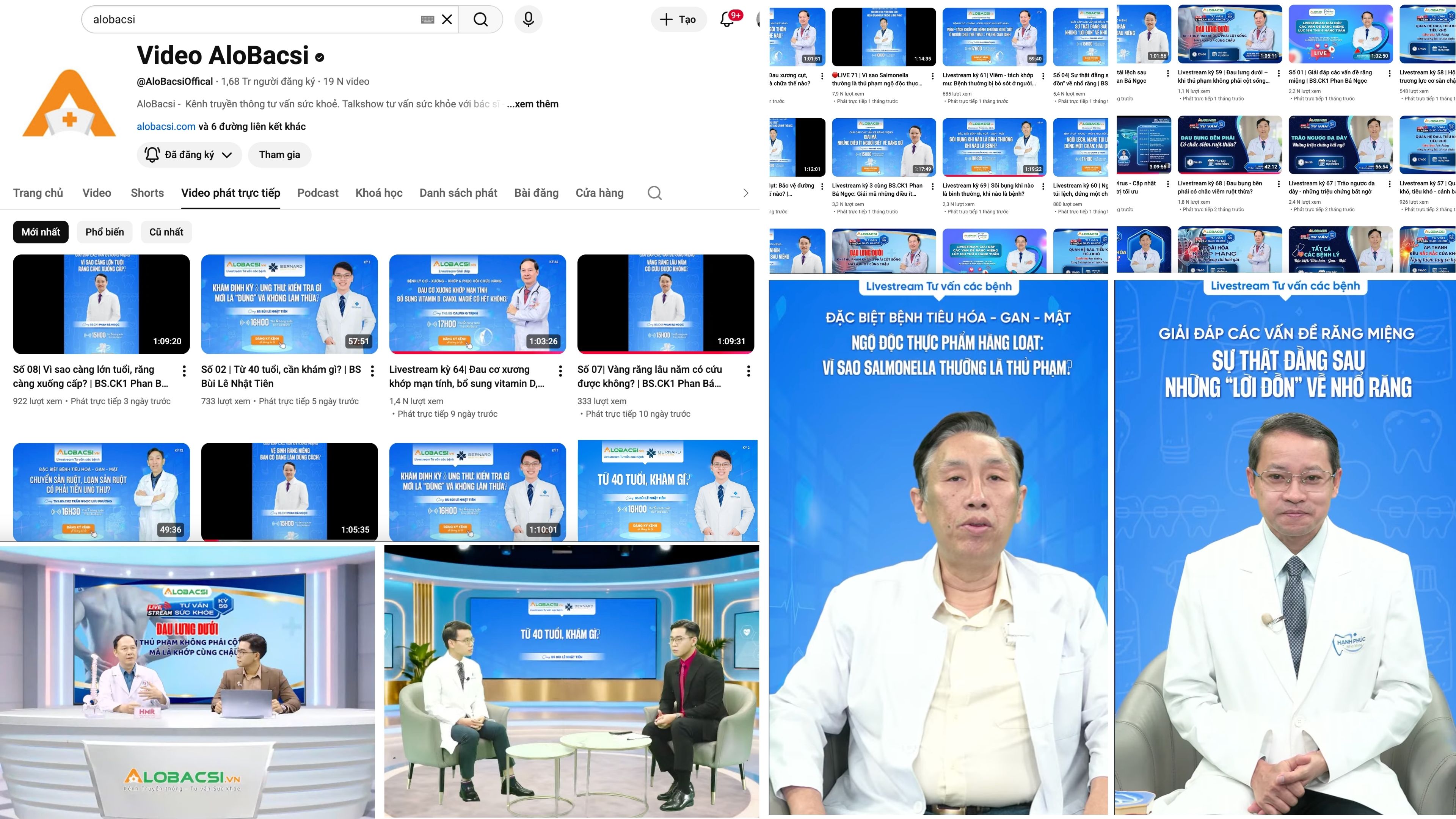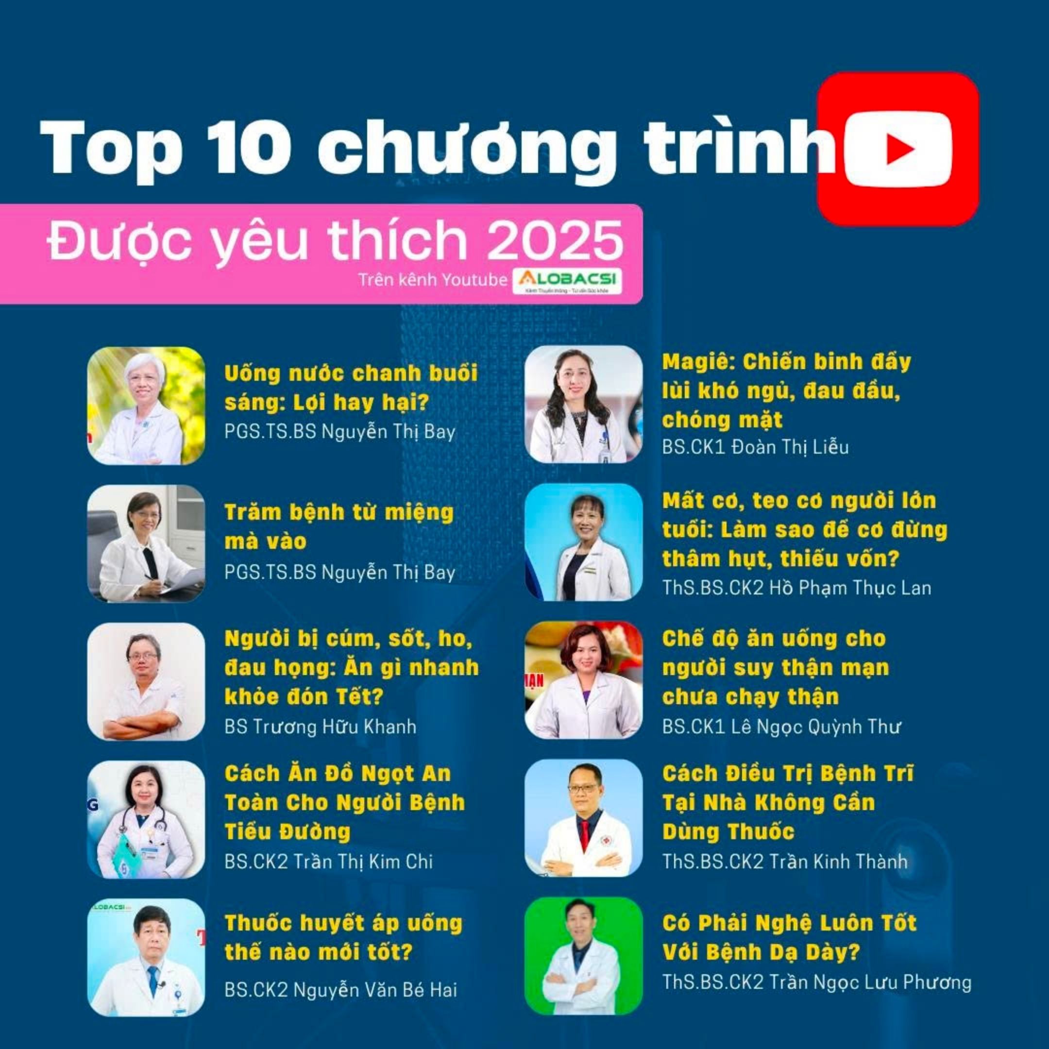 YouTube AloBacsi tiếp tục giữ vai trò nền tảng nội dung chiều sâu, đạt 1,68 triệu người theo dõi, hơn 600 triệu lượt xem, với hơn 2.500 video và chương trình được xuất bản trong năm - phản ánh cường độ sản xuất bền bỉ và nhu cầu tiếp cận kiến thức y khoa dài hạn của cộng đồng.