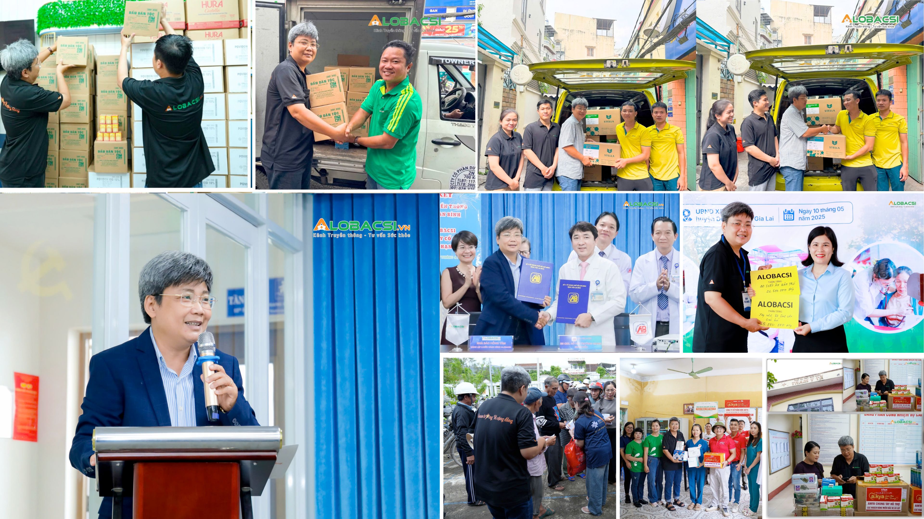 - Những tháng cuối năm, khi lũ dữ tiếp tục dày xéo miền Trung, AloBacsi nhanh chóng triển khai hỗ trợ y tế sau thiên tai, tập hợp các cơ số thuốc thiết yếu và kịp thời trao 5.550 phần thuốc đến các vùng tâm lũ Phú Yên và Khánh Hòa. Tiếp đó, đoàn y bác sĩ AloBacsi, với sự hỗ trợ hậu cần của Bernard Healthcare, trực tiếp tổ chức khám bệnh, phát thuốc cho hơn 200 lượt người dân tại Khánh Hòa và 1.287 lượt tại xã Đồng Xuân (Đắk Lắk - Phú Yên cũ). Nguồn lực hỗ trợ đến từ sự chung tay của nhiều đơn vị: Stella cung cấp hơn 70 loại thuốc thiết yếu (trị giá 450 triệu đồng), OPC với 16.000 sản phẩm dầu gió và Povidine, Delap gần 1.200 sản phẩm chăm sóc trẻ em. KingSport đồng hành với 1.000 máy đo huyết áp cùng 320 túi bánh Hura - những phần quà thiết thực trong bối cảnh thuốc men còn khan hiếm sau thiên tai.