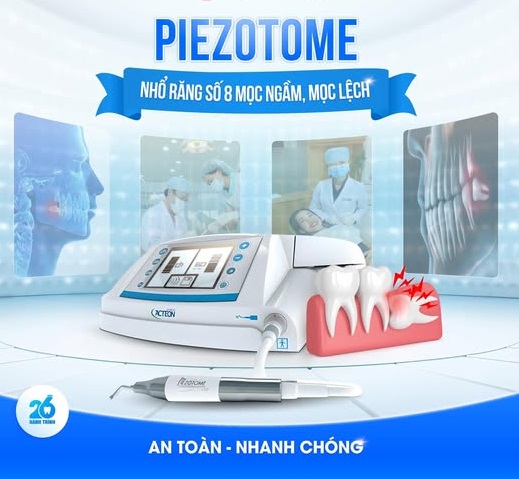 Tại Nha khoa Nhân Tâm, công nghệ Piezotome được ứng dụng trong nhổ răng khôn. Thiết bị hoạt động với dải sóng siêu âm 28-36 KHz, hỗ trợ bóc tách dây chằng nha chu theo hướng chọn lọc, giảm tác động lên mô mềm xung quanh. Nhờ cơ chế này, cảm giác đau trong quá trình điều trị được kiểm soát tốt hơn, đồng thời hỗ trợ quá trình hồi phục diễn ra nhẹ nhàng hơn. Trải nghiệm thực tế tại đây được nhiều khách hàng đánh giá cao, đặc biệt trong nhóm dịch vụ nhổ răng không đau TPHCM.