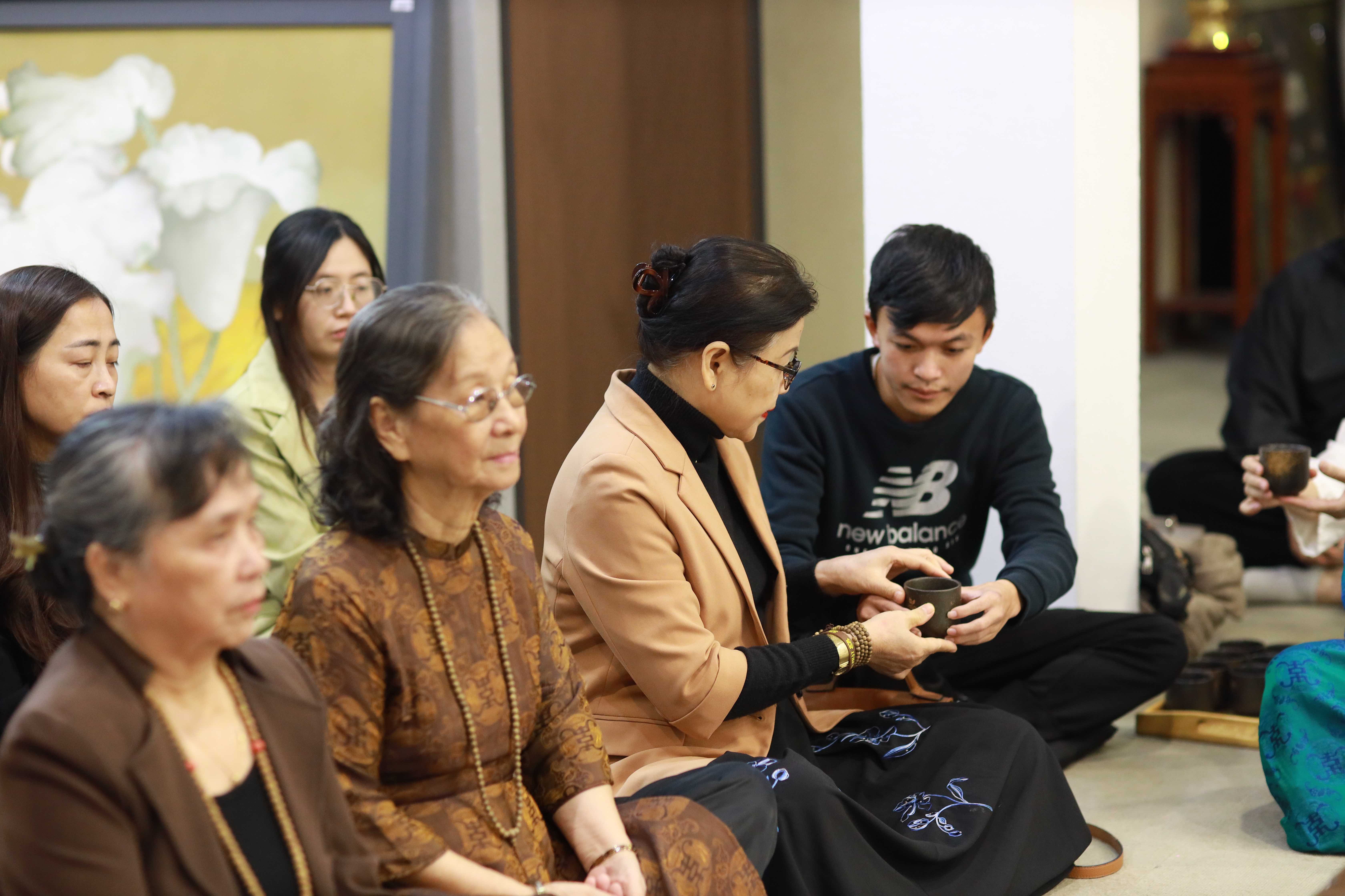 Không gian được thiết kế tối giản, ánh sáng ấm và hương trà nhẹ nhàng, tạo cảm giác tách biệt hoàn toàn với sự ồn ào bên ngoài. Sự đa dạng của người tham dự là một trong những điểm nhấn đặc biệt: từ doanh nhân, nhân viên văn phòng, giảng viên, sinh viên cho đến những vị khách lớn tuổi yêu thích trà đạo.