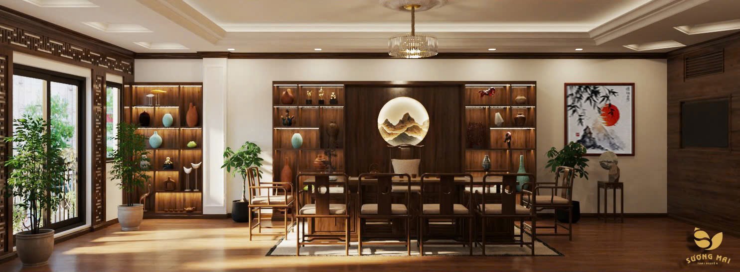 Một phòng trà được thiết kế bởi Nội Thất Sương Mai không chỉ là nơi để thưởng trà, mà còn là không gian lý tưởng cho các cuộc gặp gỡ cấp cao. Sự bố trí khoa học, hợp lý của nội thất giúp tối ưu hóa luồng di chuyển và tạo ra nhiều khu vực chức năng riêng biệt, phục vụ cả nhu cầu riêng tư lẫn các cuộc họp nhóm nhỏ.
