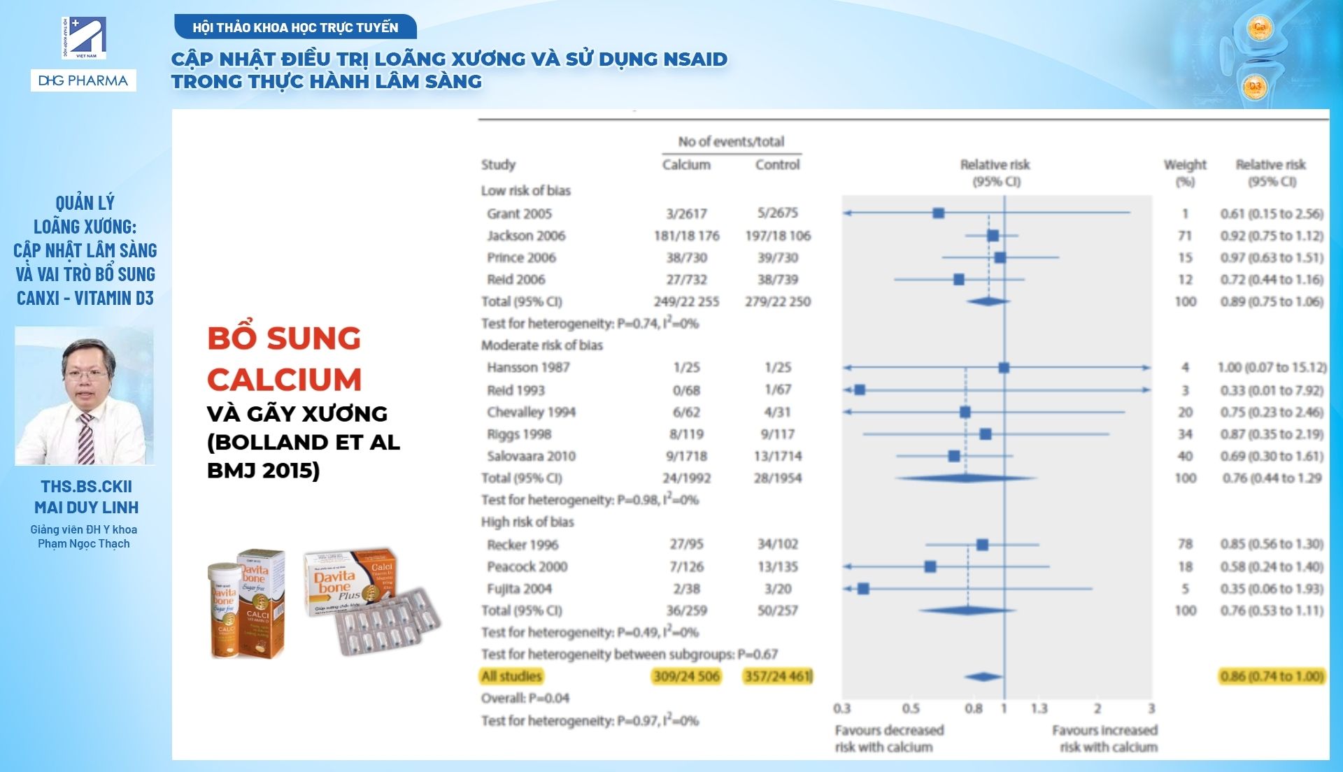 ThS.BS.CK2 Mai Duy Linh đánh giá: “Bổ sung Canxi và Vitamin D3 đúng cách không chỉ phòng ngừa loãng xương mà còn nâng cao hiệu quả của các thuốc điều trị đặc hiệu”.