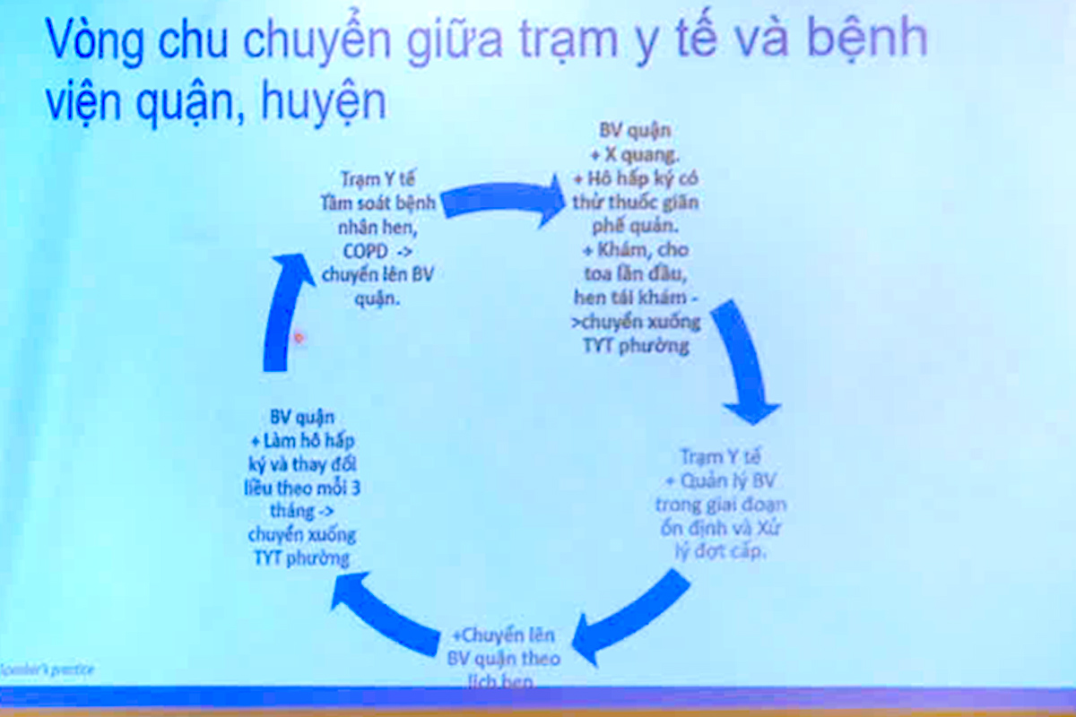 Với đặc thù là nơi gần dân nhất, trạm y tế giữ vai trò quan trọng trong việc tầm soát sớm hen và COPD thông qua bảng câu hỏi lâm sàng đơn giản. Sau khi sàng lọc, những trường hợp nghi ngờ sẽ được chuyển lên tuyến trên để xác định chẩn đoán và chỉ định phác đồ điều trị ban đầu.