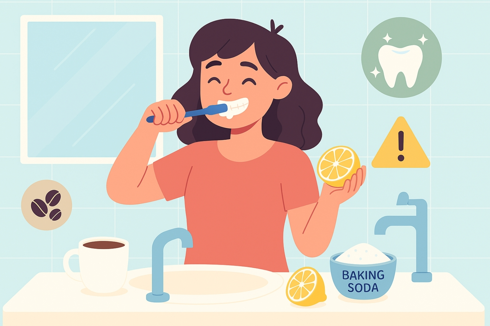 Nếu răng bị xỉn màu nhẹ, bạn có thể thử các cách tẩy trắng tự nhiên như chanh hoặc baking soda, nhưng chỉ nên thực hiện 2-3 lần/tuần, không kéo dài quá 2-3 tuần. Khi xuất hiện ê buốt hoặc chảy máu chân răng, cần ngừng ngay và đến nha sĩ để được xử lý kịp thời.