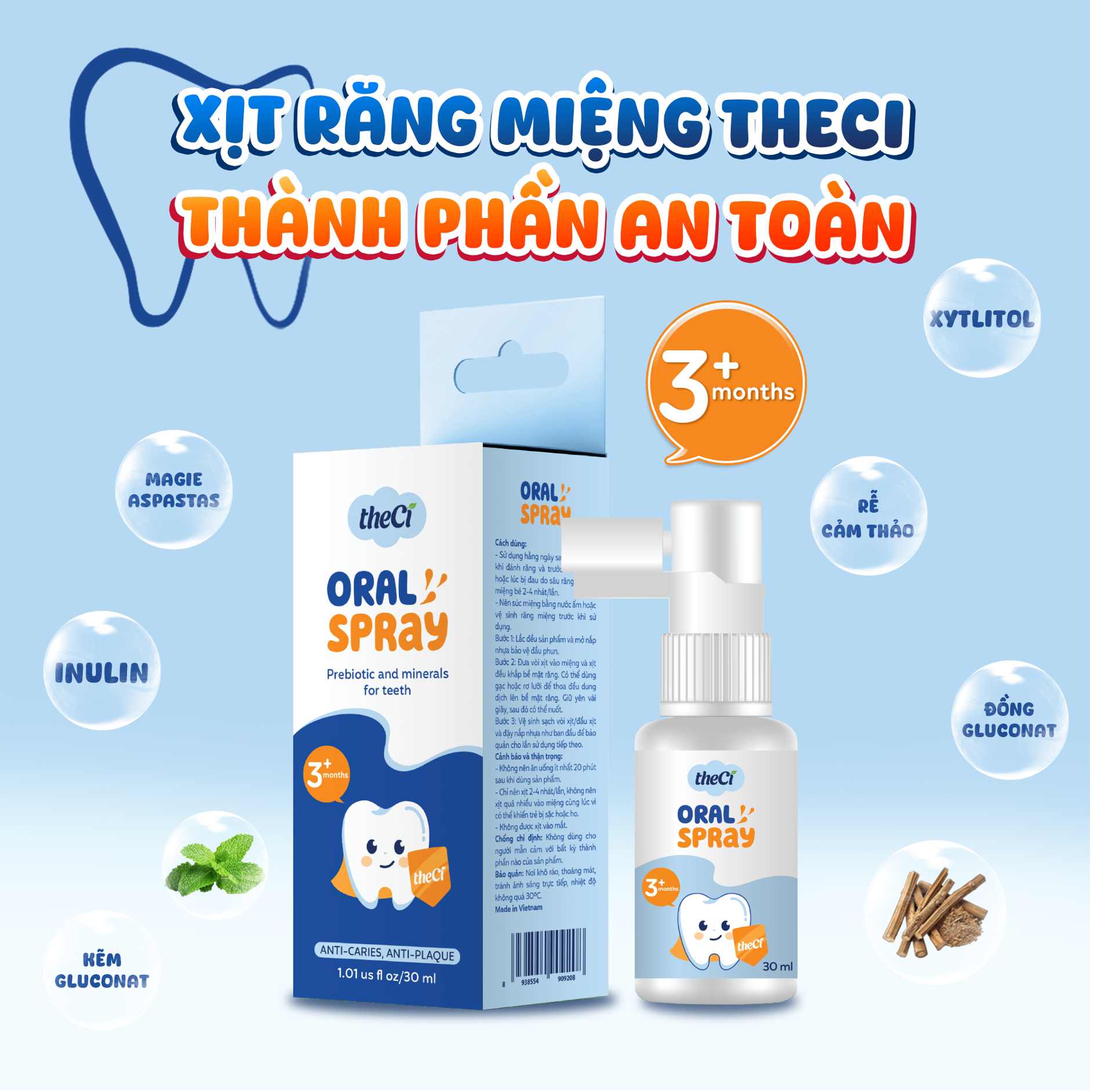 Hiểu rõ rằng răng miệng của trẻ từ sơ sinh đến 3 tuổi còn cực kỳ non nớt, theCi top 10 thương hiệu tín nhiệm hàng đầu Châu Á đã dành nhiều năm nghiên cứu để tạo ra một sản phẩm xịt răng miệng vừa an toàn, vừa lành tính nhưng vẫn đảm bảo hỗ trợ giảm sâu răng ngay từ giai đoạn đầu đời. Đây là lứa tuổi mà việc can thiệp nha khoa gần như không thể thực hiện, nên chăm sóc tại nhà bằng phương pháp phù hợp là yếu tố quyết định. Xịt răng miệng chống sâu răng cho bé theCi ra đời với mục tiêu trở thành “người bạn đồng hành” của mẹ trong giai đoạn răng sữa hình thành và phát triển - với công thức được đánh giá cao nhờ hệ hoạt chất chuyên biệt.