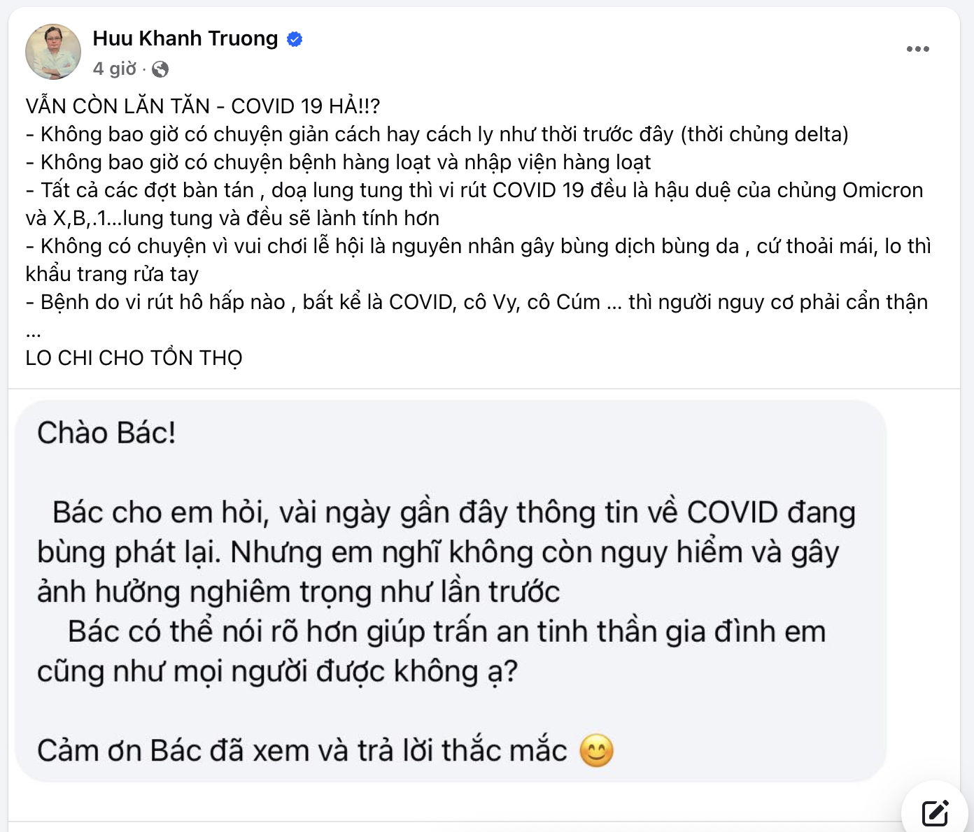 Tổ chức Y tế Thế giới (WHO) cũng chưa ghi nhận biến chủng mới đáng lo ngại nào, và tình hình tử vong liên quan đến COVID-19 trên toàn cầu đang có xu hướng giảm. Tại Việt Nam, COVID-19 hiện được xếp vào nhóm bệnh truyền nhiễm lưu hành, và được theo dõi tương tự các bệnh cúm mùa.