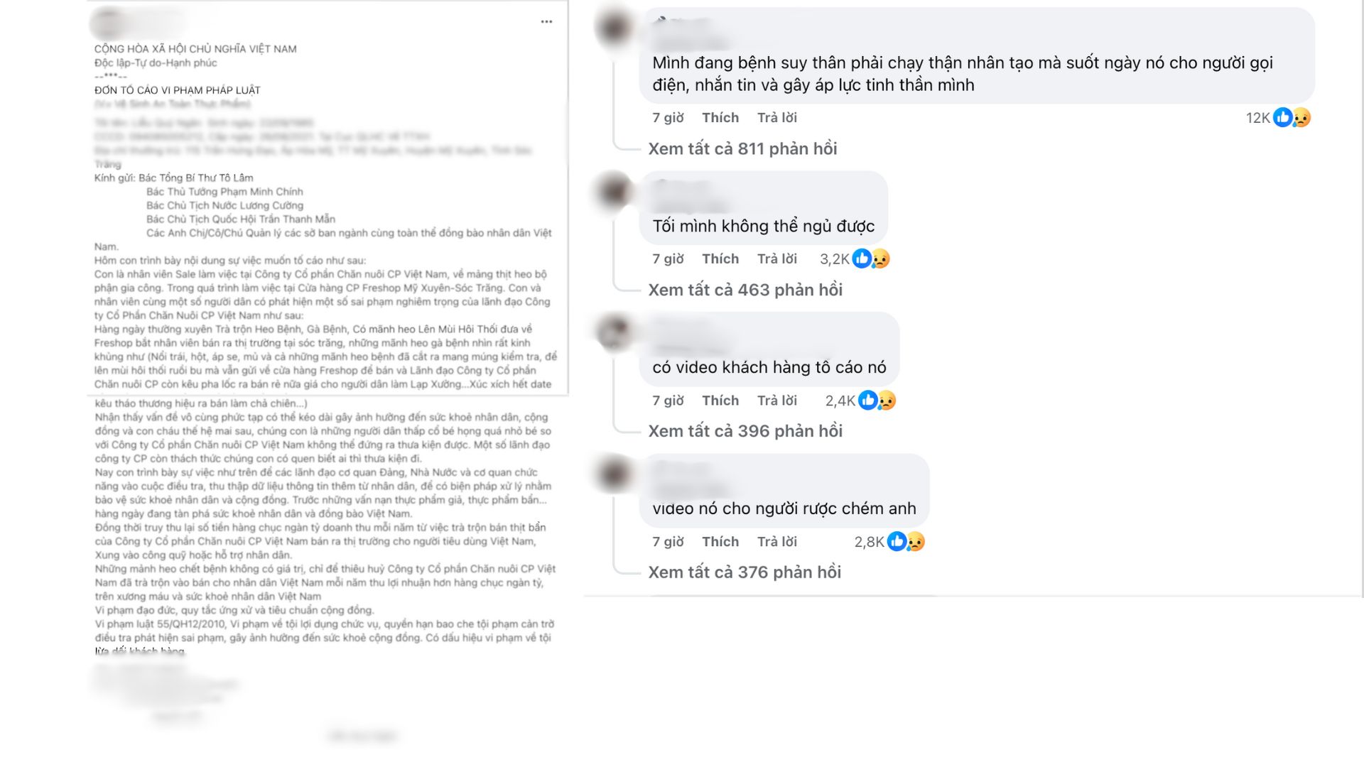 Trước đó, một tài khoản Facebook mang tên L.Q.N., tự xưng là nhân viên làm việc tại cửa hàng thực phẩm, đã đăng tải bài viết phản ánh một số vấn đề liên quan đến C.P Việt Nam. Bài đăng nhanh chóng lan truyền trên mạng xã hội, thu hút lượng lớn bình luận và chia sẻ, gây hoang mang cho nhiều người tiêu dùng.