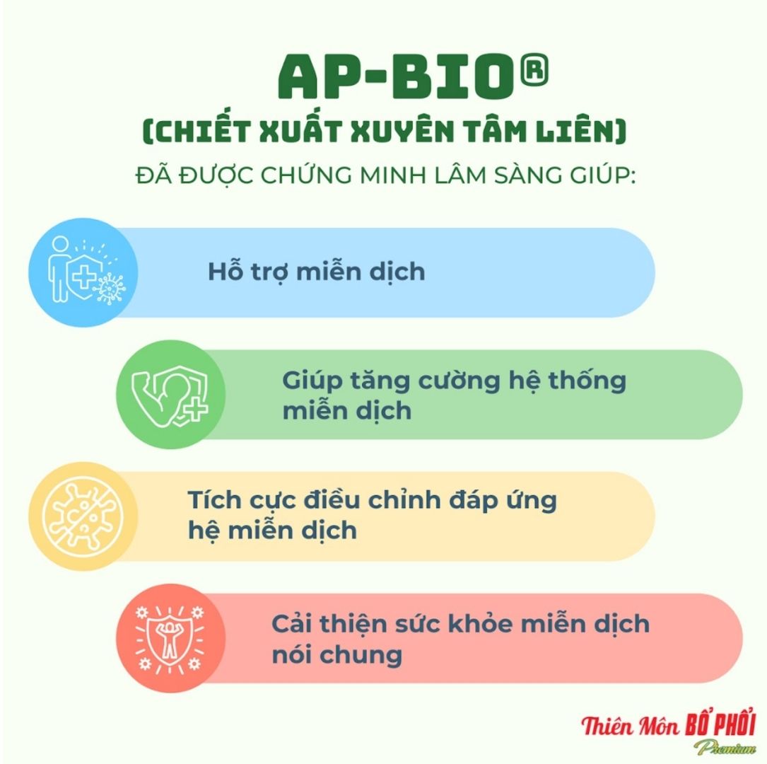 - AP-Bio® (560mg): Thành phần đột phá giúp giảm nhanh triệu chứng cảm lạnh