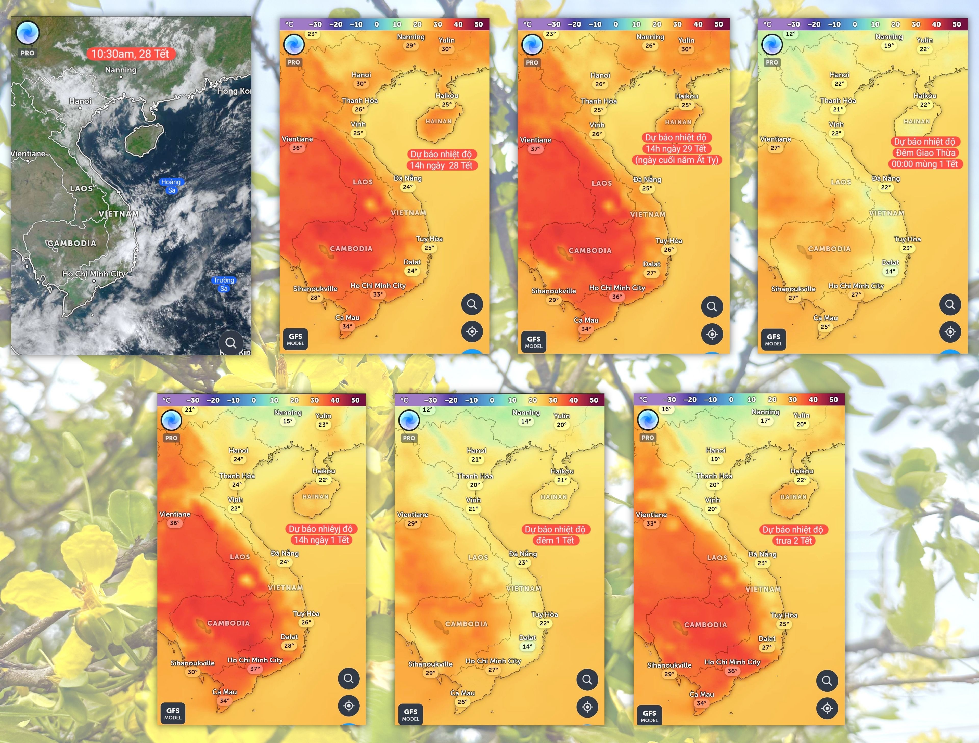 Dự báo từ các mô hình GFS và ECMWF cho thấy, đêm Giao thừa, khu vực miền núi phía Đông Bắc và đồng bằng Bắc Bộ có thể giảm còn khoảng 22°C; trưa mùng 1 Tết khoảng 24°C. Từ tối mùng 1, nhiệt độ Hà Nội có thể xuống mức 21°C và tiếp tục giảm còn khoảng 19°C trong ngày mùng 2 Tết. Vùng núi phía Đông Bắc có thể xuất hiện mức nhiệt thấp khoảng 14°C vào ban đêm.