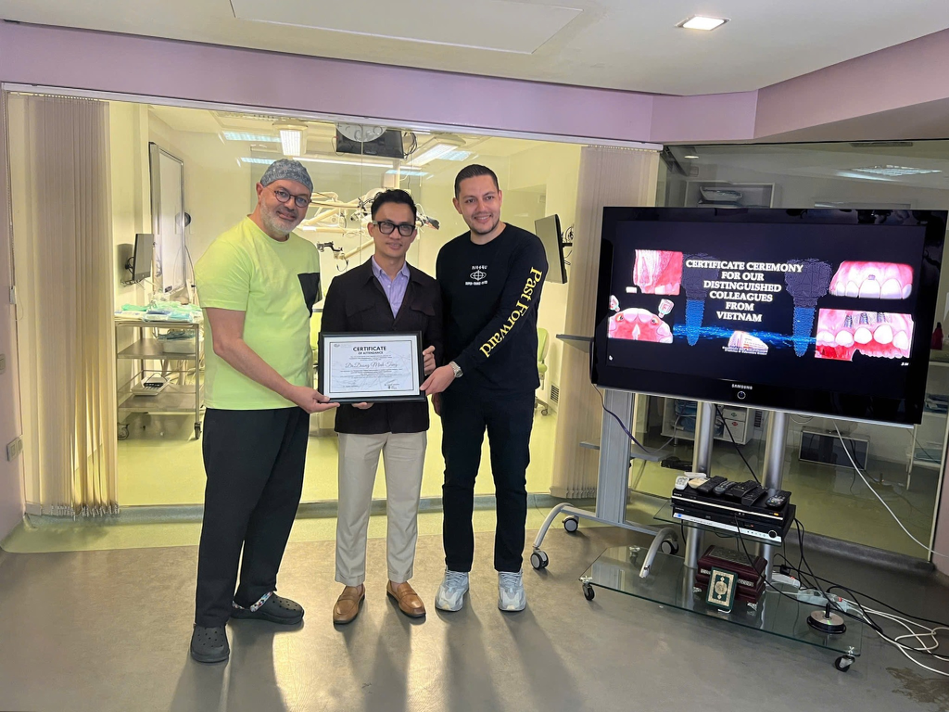 Song song với việc ứng dụng công nghệ, ThS.BS Dương Minh Tùng duy trì tinh thần học hỏi và cập nhật chuyên môn liên tục. Bác sĩ đã tham gia hơn 1.160 giờ đào tạo trong và ngoài nước, tu nghiệp tại các quốc gia có nền nha khoa phát triển và từng thực hành lâm sàng tại Trung tâm Phẫu thuật Sọ Mặt - Bệnh viện Chang Gung (Đài Loan). Gần đây, việc trực tiếp học hỏi từ Giáo sư Jaafar Mouhyi (cựu Chủ tịch Hiệp hội Nha khoa Kỹ thuật số) giúp bác sĩ tiếp cận sâu hơn với các tiến bộ về vật liệu sinh học, bệnh lý quanh Implant và quy trình điều trị số hóa. Đây cũng là yếu tố mang lại độ chính xác cao, giảm xâm lấn và tăng tính an toàn trong điều trị cấy ghép Implant (Dental implant).