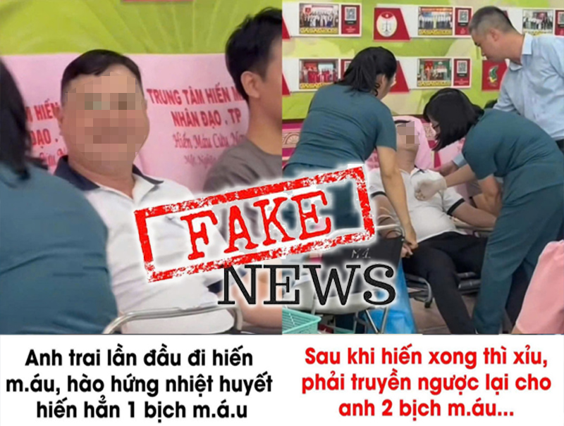 Mạng xã hội lan truyền hình ảnh một người lần đầu đi hiến máu “hào hứng” nhưng sau khi hiến xong thì bị xỉu và phải “truyền ngược lại” 2 bịch máu. Câu chuyện khiến người xem vừa thấy thương vừa buồn cười, tuy nhiên đây lại là thông tin không chính xác.