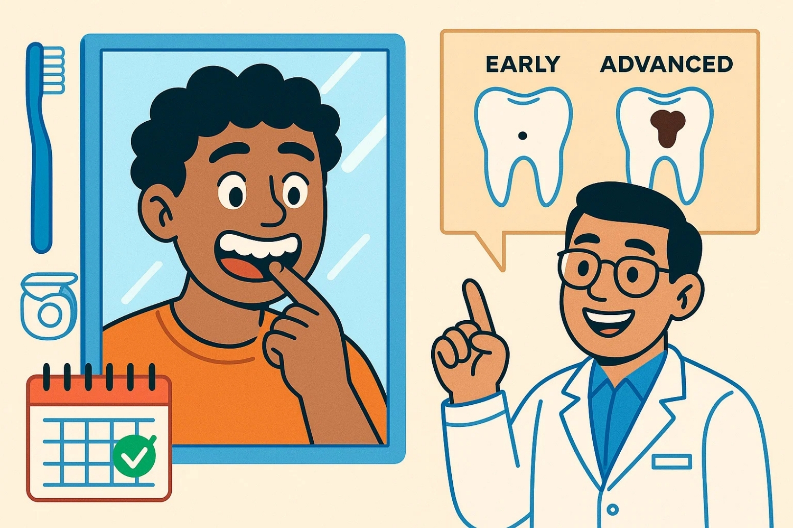 Nhiều người đợi đến khi thấy “lỗ sâu lớn” mới lo lắng, nhưng lúc đó răng đã bị tổn thương nghiêm trọng. Phát hiện sớm sẽ giúp điều trị đơn giản, ít tốn kém và bảo tồn răng thật tối đa.