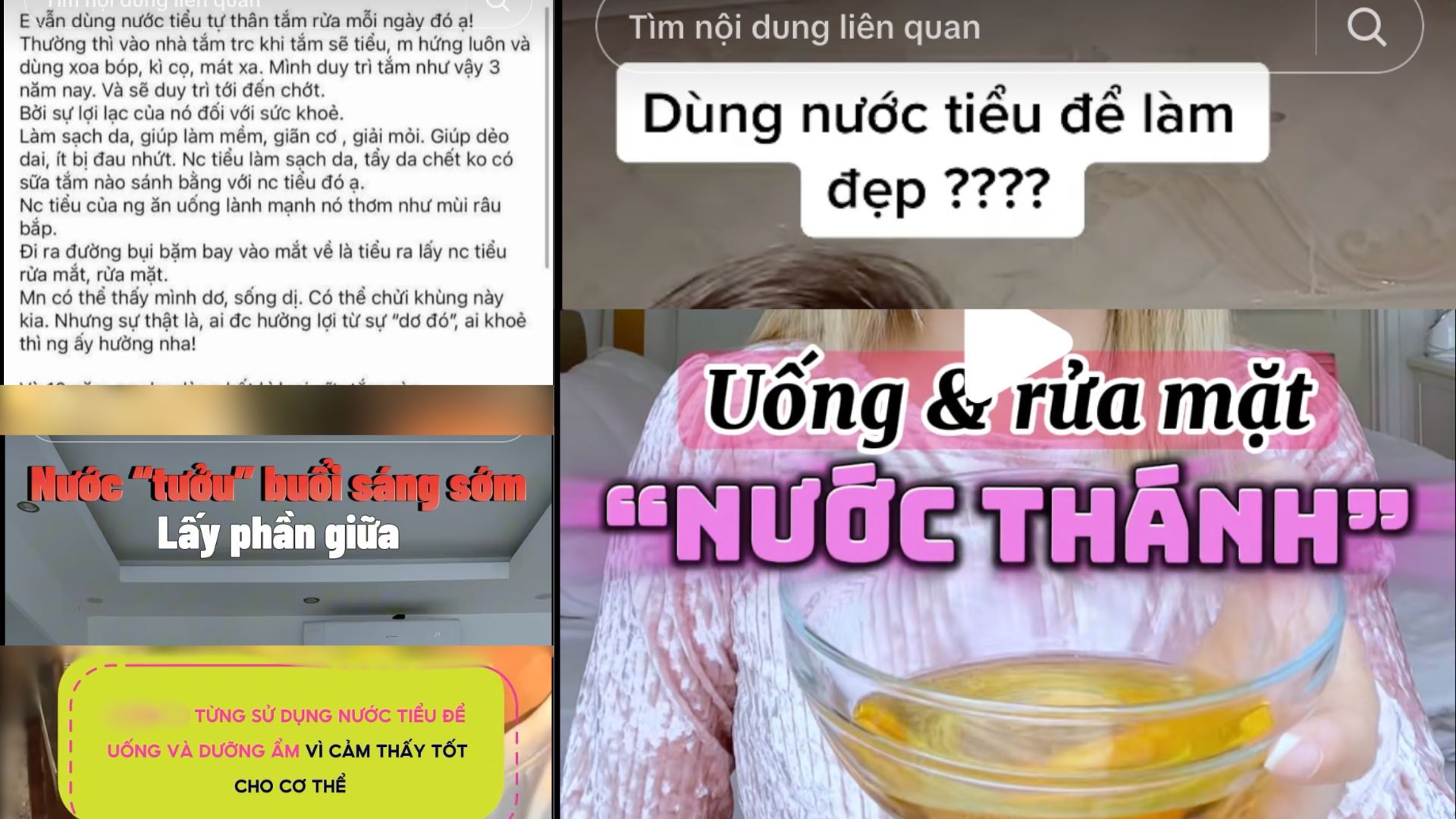 Một số nội dung lan truyền trên mạng xã hội đang cổ vũ việc dùng nước tiểu tự thân để tắm, rửa mặt, mát xa, thậm chí nhỏ mắt hoặc uống với kỳ vọng làm đẹp, thanh lọc cơ thể. Tuy nhiên, các chuyên gia cảnh báo đây là cách làm phản khoa học, có thể gây kích ứng, nhiễm trùng và ảnh hưởng sức khỏe.