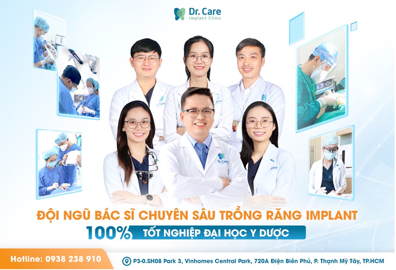 Không chỉ là nơi điều trị mất răng, Dr. Care Implant Clinic còn được xem là đơn vị tiên phong tại Việt Nam trong lĩnh vực trồng răng Implant dành riêng cho người trung niên. Với đội ngũ bác sĩ tốt nghiệp Đại học Y Dược TP.HCM, ít nhất từ 7 - 15 năm kinh nghiệm chuyên sâu về Implant, Dr. Care đảm bảo từng ca cấy ghép được lên kế hoạch chính xác bằng công nghệ kỹ thuật số hiện đại, đảm bảo an toàn, không đau và phục hồi nhanh.