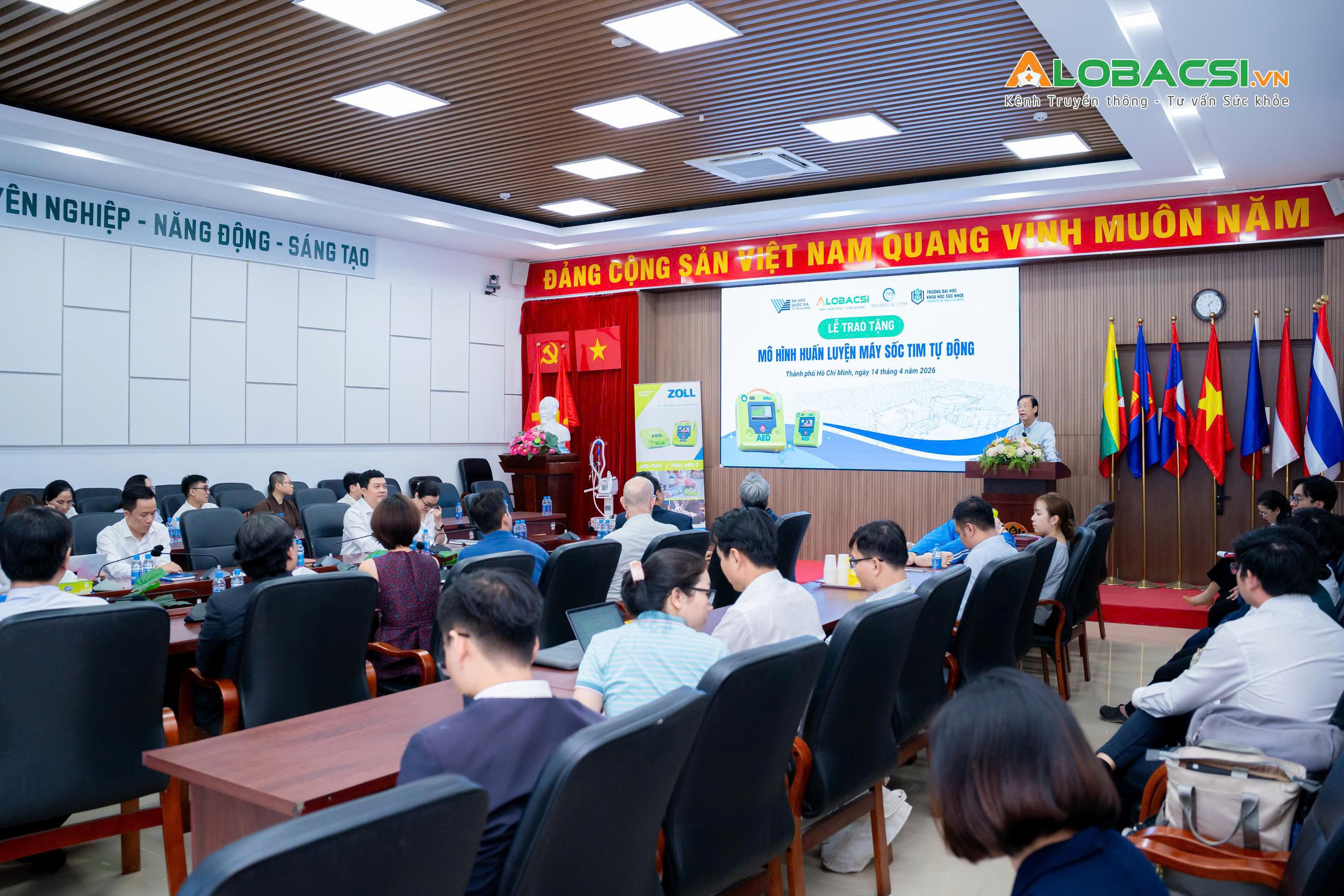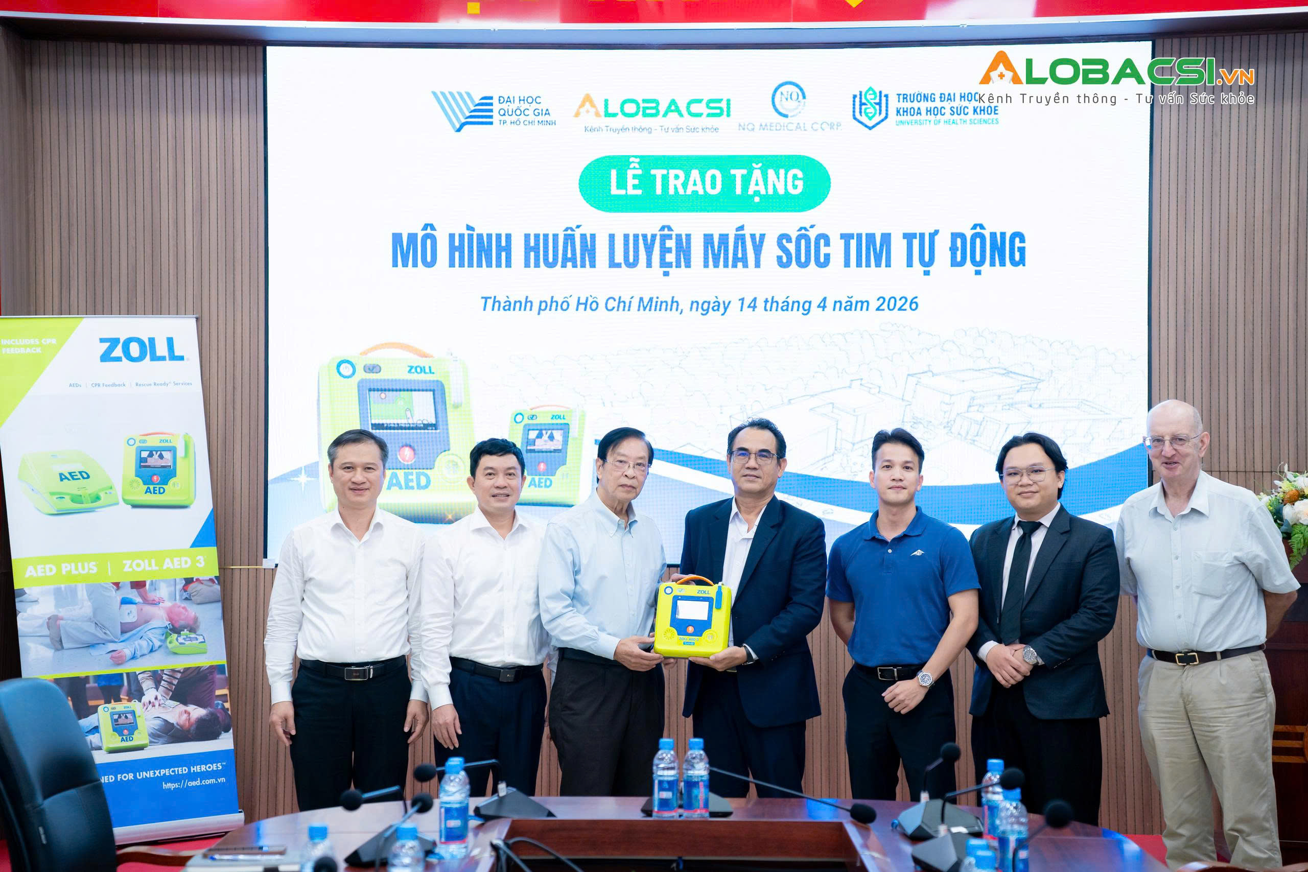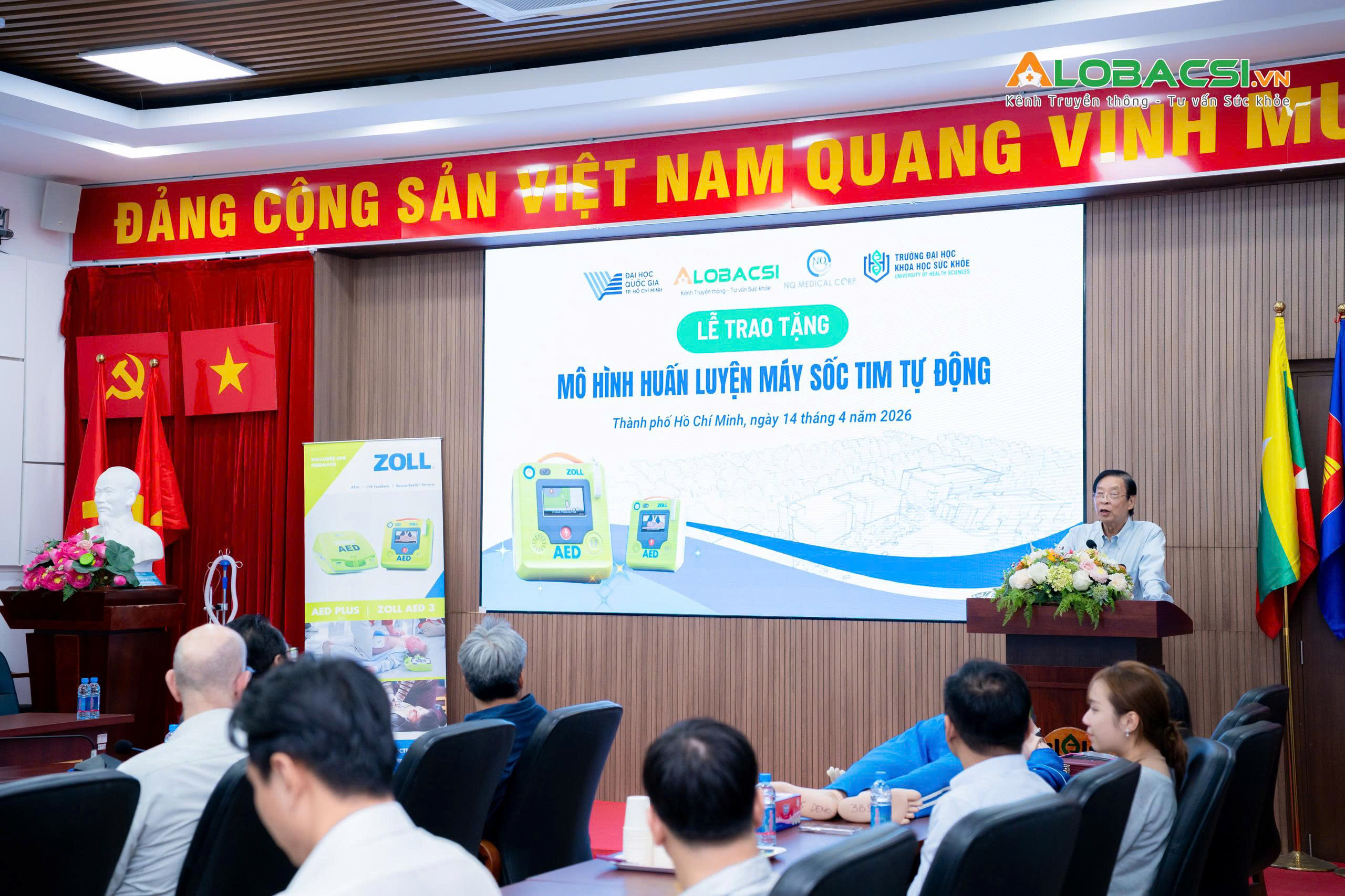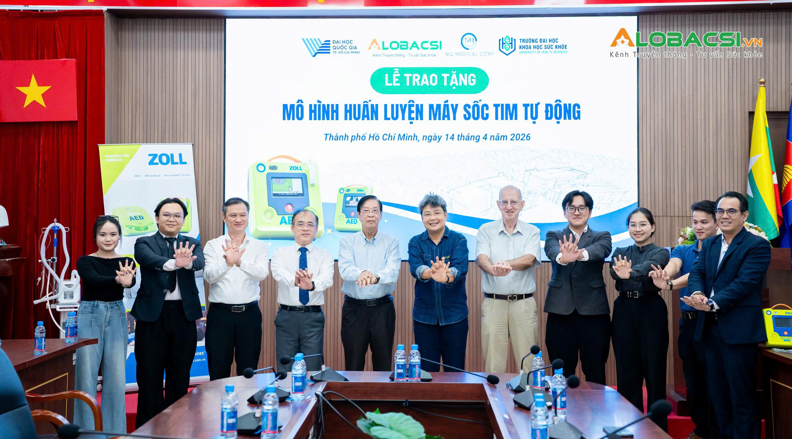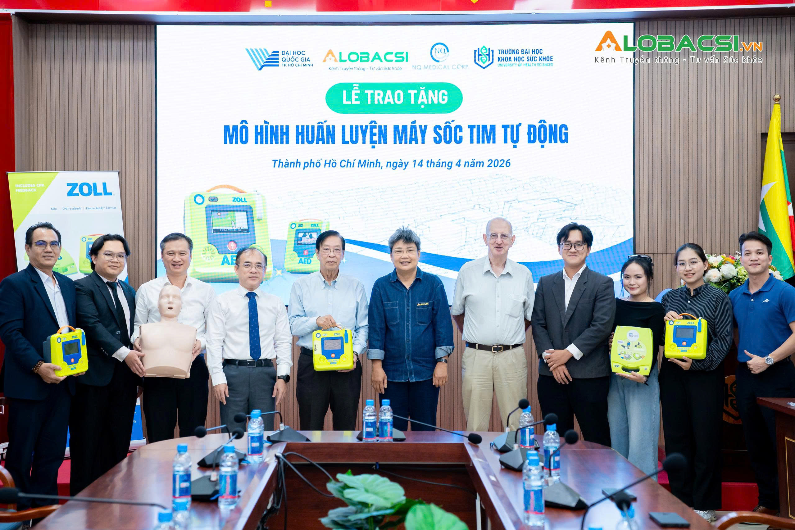 Ngày 14/4/2026, Trường Đại học Khoa học Sức khỏe - ĐHQG-TPHCM (UHS) tổ chức lễ tiếp nhận gần 20 thiết bị, mô hình và dụng cụ phục vụ đào tạo thực hành do Công ty Cổ phần Y khoa NQ phối hợp cùng hãng 3B Scientific trao tặng. Hoạt động nhằm tăng cường năng lực huấn luyện tiền lâm sàng, hỗ trợ giảng viên và sinh viên tiếp cận sớm hơn với các kỹ năng cấp cứu và thao tác y khoa cơ bản.