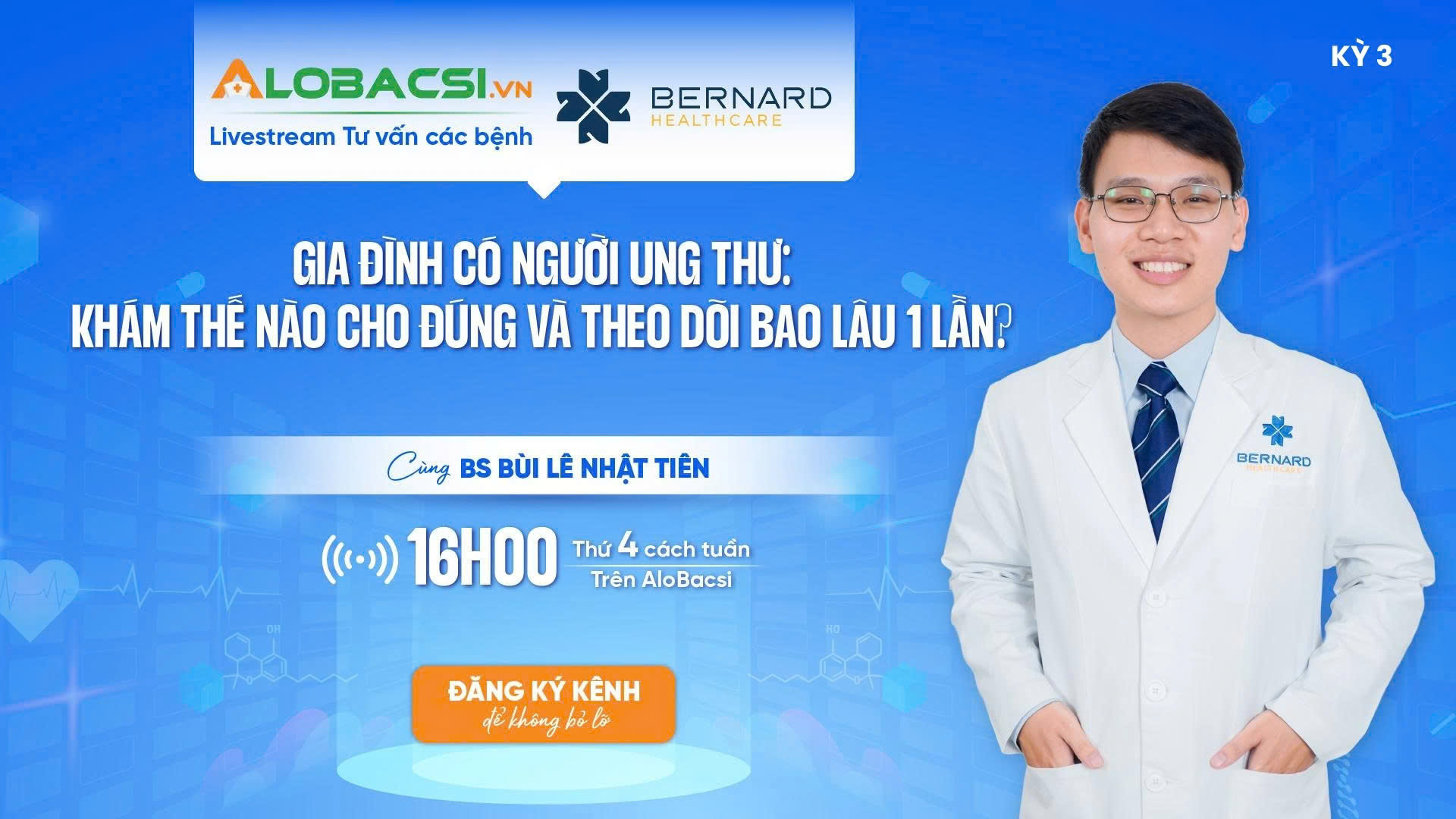 Tất cả sẽ được BS Bùi Lê Nhật Tiên chia sẻ trong livestream “Gia đình có người ung thư - Khám thế nào cho đúng và theo dõi bao lâu 1 lần?”, thuộc chuỗi chương trình Truy vết ung thư, phát sóng lúc 16h ngày 7/1/2026 trên các kênh Fanpage, YouTube, TikTok, Zalo AloBacsi và fanpage của Bernard Healthcare.