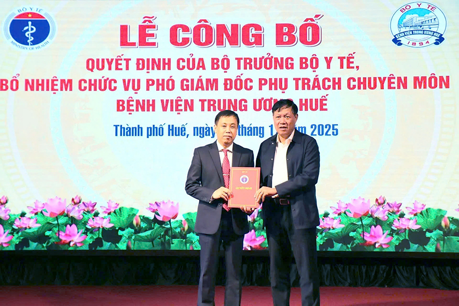 Thứ trưởng Bộ Y tế Đỗ Xuân Tuyên đã trao quyết định bổ nhiệm TS.BS Hồ Văn Linh, Trưởng phòng Chỉ đạo tuyến, Trưởng khoa Phẫu thuật Ung bướu, Phó trưởng khoa Ngoại tiêu hóa, giữ chức vụ Phó giám đốc phụ trách chuyên môn Bệnh viện Trung ương Huế.