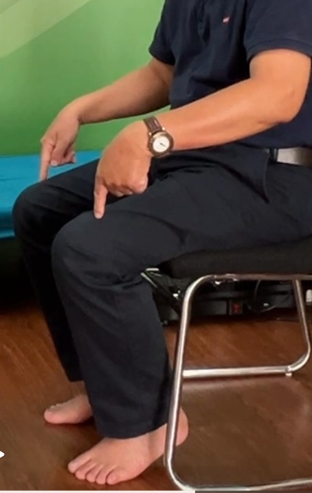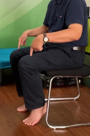 Ngồi để hai mặt bàn chân áp sát mặt sàn, nhịp luân phiên chân xuống mặt sàn.