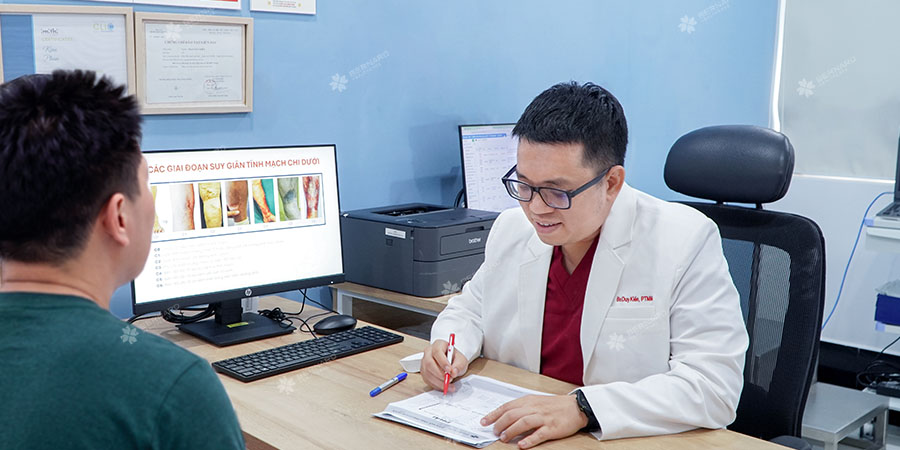 Bệnh nhân được thăm khám, siêu âm và điều trị trực tiếp bởi BS.CK2 Phan Duy Kiên - chuyên khoa phẫu thuật mạch máu, hơn 15 năm kinh nghiệm tại Bệnh viện Chợ Rẫy. Bên cạnh là thành viên chính thức của các hiệp hội tĩnh mạch quốc tế uy tín (AVF, EVF, ESVS), bác sĩ Kiên còn được biết đến là người tiên phong ứng dụng laser nội mạch bước sóng mới 1940nm tại Việt Nam.