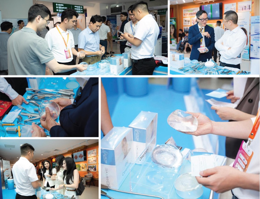 Trong khuôn khổ hội nghị, túi ngực Cereform đến từ Pháp thu hút sự quan tâm của nhiều bác sĩ, chuyên gia thẩm mỹ. Tại gian hàng trưng bày, các bác sĩ đã trực tiếp trao đổi chuyên sâu về những tiêu chí quan trọng khi lựa chọn túi ngực trong phẫu thuật nâng ngực thẩm mỹ và tái tạo, đặc biệt là độ ổn định, khả năng giữ form và sự phù hợp với từng chỉ định lâm sàng.