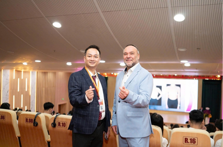 Bên cạnh sự quan tâm từ giới chuyên môn trong nước, HSAPS 2025 còn ghi nhận sự hiện diện của ông Pierre Mileur – Giám đốc Đối ngoại, đại diện thương hiệu túi ngực Cereform thuộc Tập đoàn Euromi Biosciences. Tại hội nghị, ông đã chia sẻ những góc nhìn quốc tế về xu hướng nâng ngực hiện đại.