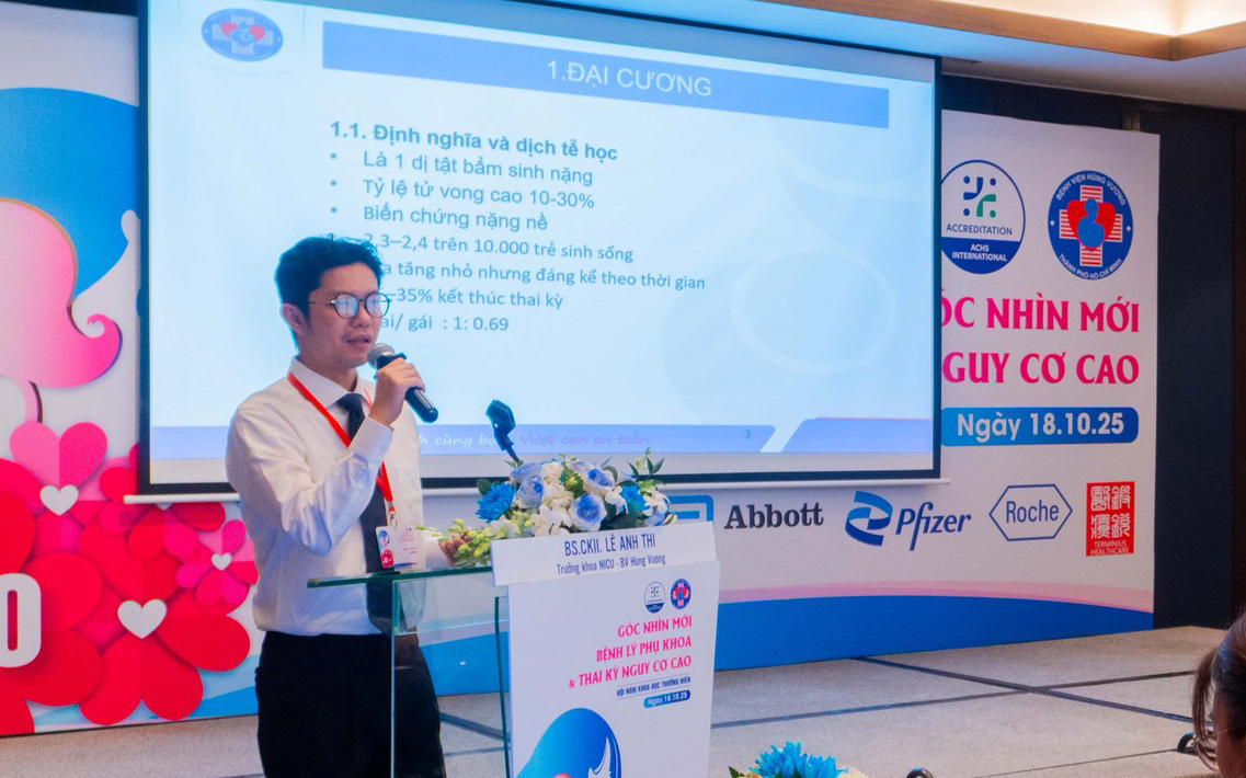 Tại Hội nghị khoa học thường niên lần thứ 10 của Bệnh viện Hùng Vương với chủ đề “Góc nhìn mới - Bệnh lý phụ khoa và Thai kỳ nguy cơ cao”, phiên Nhi sơ sinh quy tụ nhiều báo cáo chuyên sâu, phản ánh những tiến bộ nổi bật trong chăm sóc và điều trị trẻ sơ sinh non tháng, bệnh lý nặng tại Việt Nam.