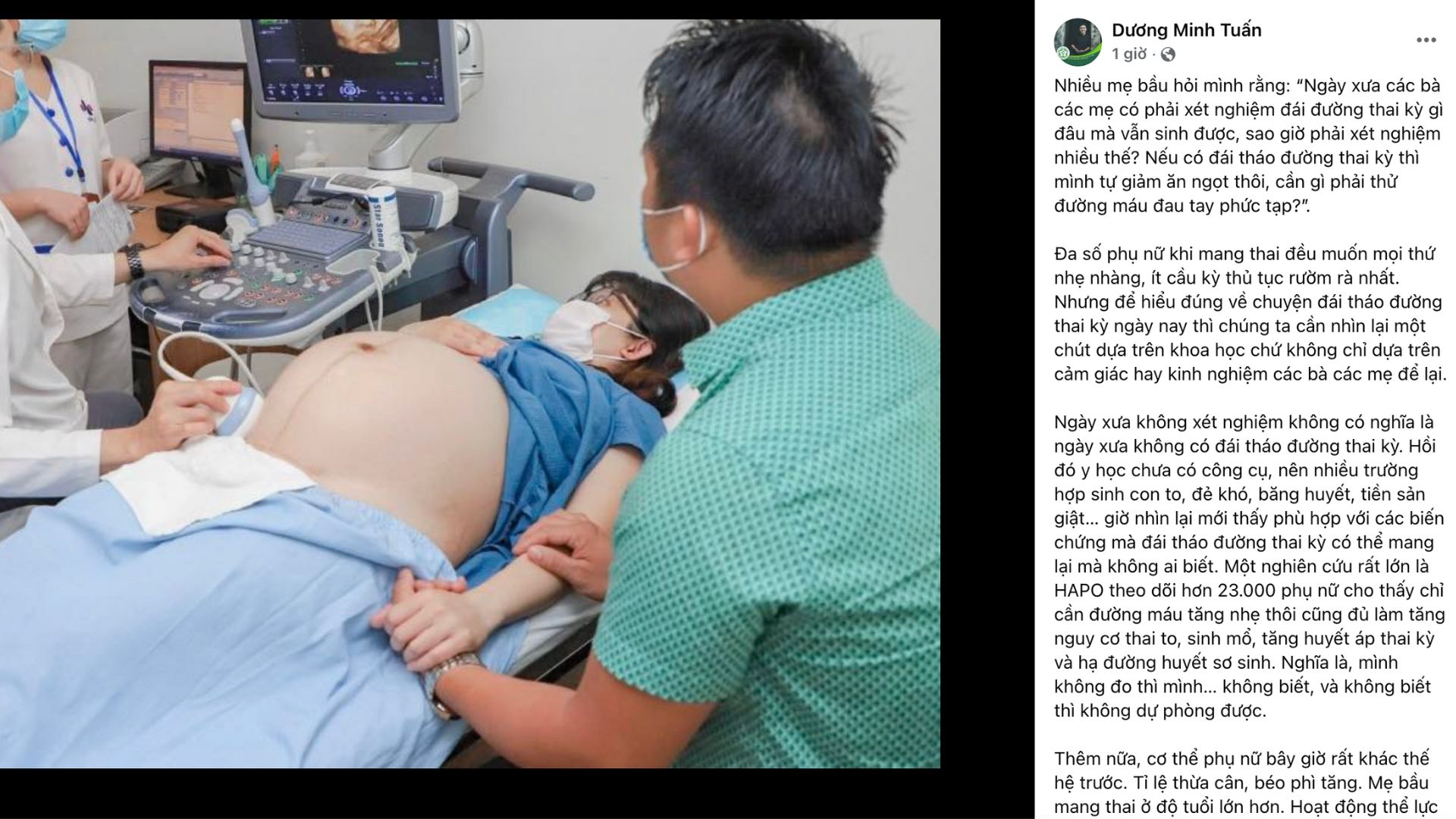 Theo BS.CK2 Dương Minh Tuấn, xét nghiệm không nhằm làm phiền mẹ bầu mà để đảm bảo an toàn cho cả mẹ và bé. Đái tháo đường thai kỳ phát hiện sớm, điều chỉnh đúng sẽ giúp thai kỳ diễn ra khỏe mạnh và tránh được nhiều biến chứng nguy hiểm.