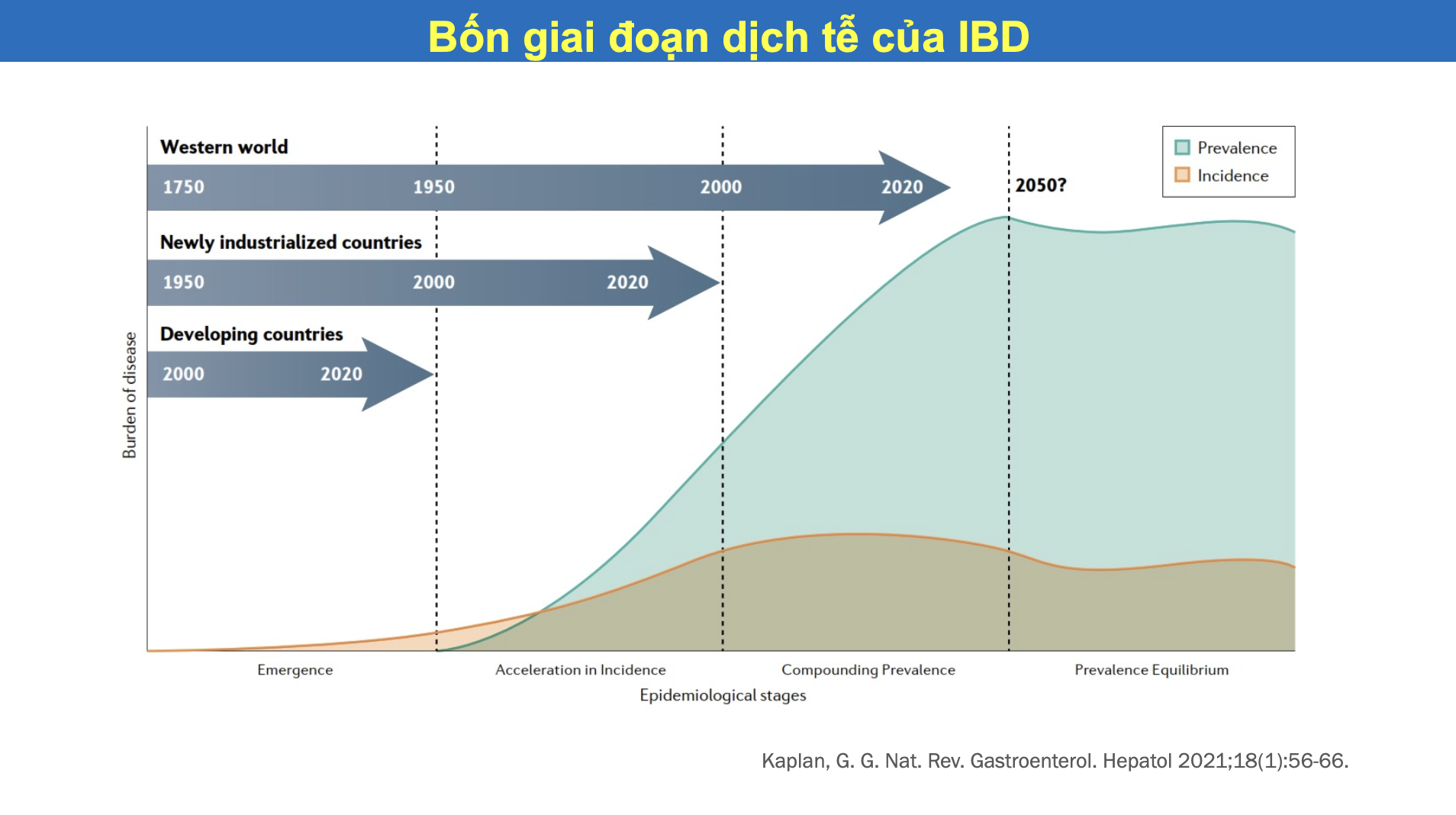 Theo mô hình dịch tễ học quốc tế, IBD phát triển qua bốn giai đoạn: