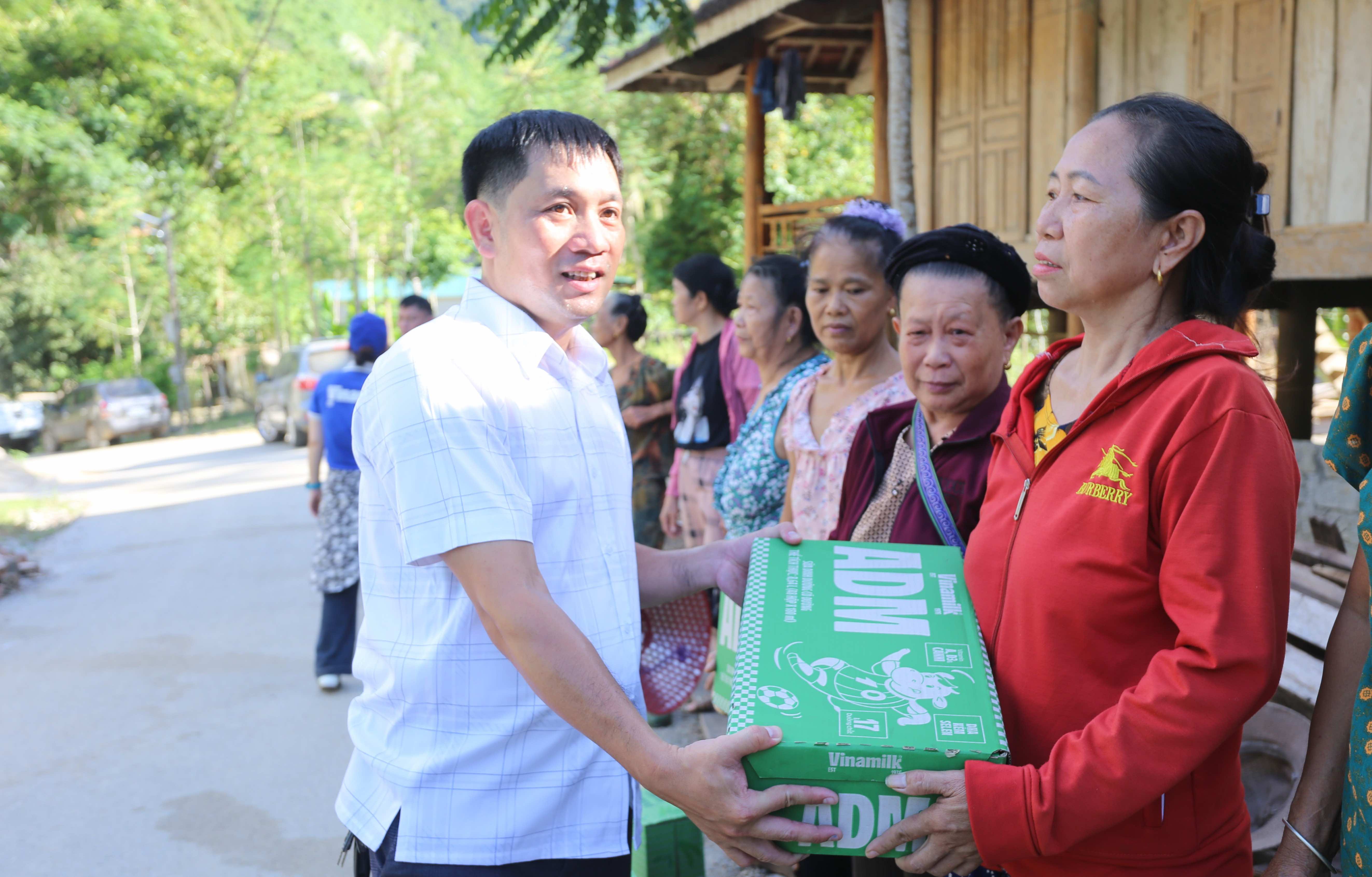 Ông Nguyễn Danh Đạo - Giám đốc Nhà máy Sữa Nghệ An (thuộc Vinamilk) cùng các thành viên trong đoàn đã thăm hỏi, động viên và trao sữa, trao quà cho bà con tại xã Tương Dương, mong bà con nhanh chóng ổn định cuộc sống.