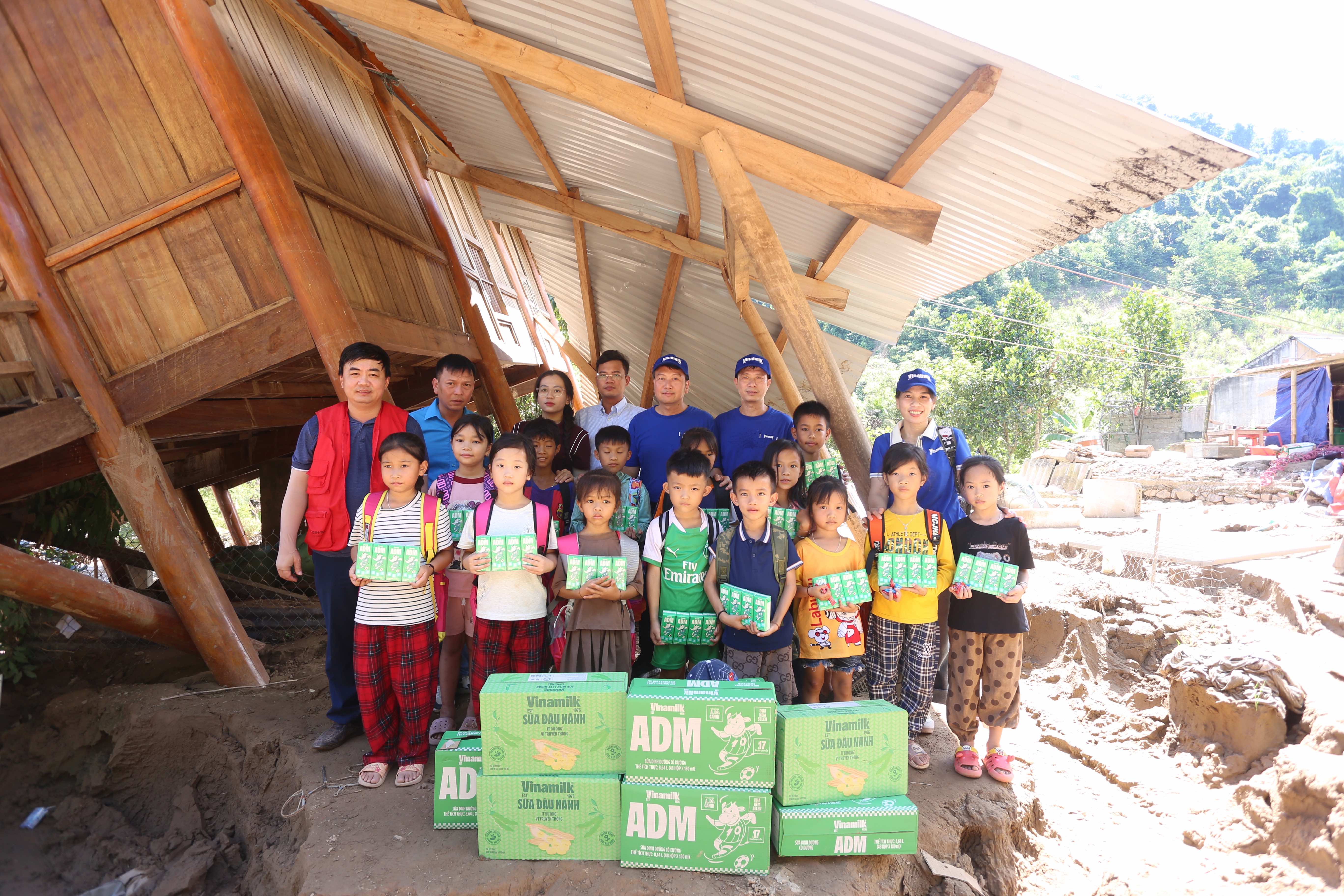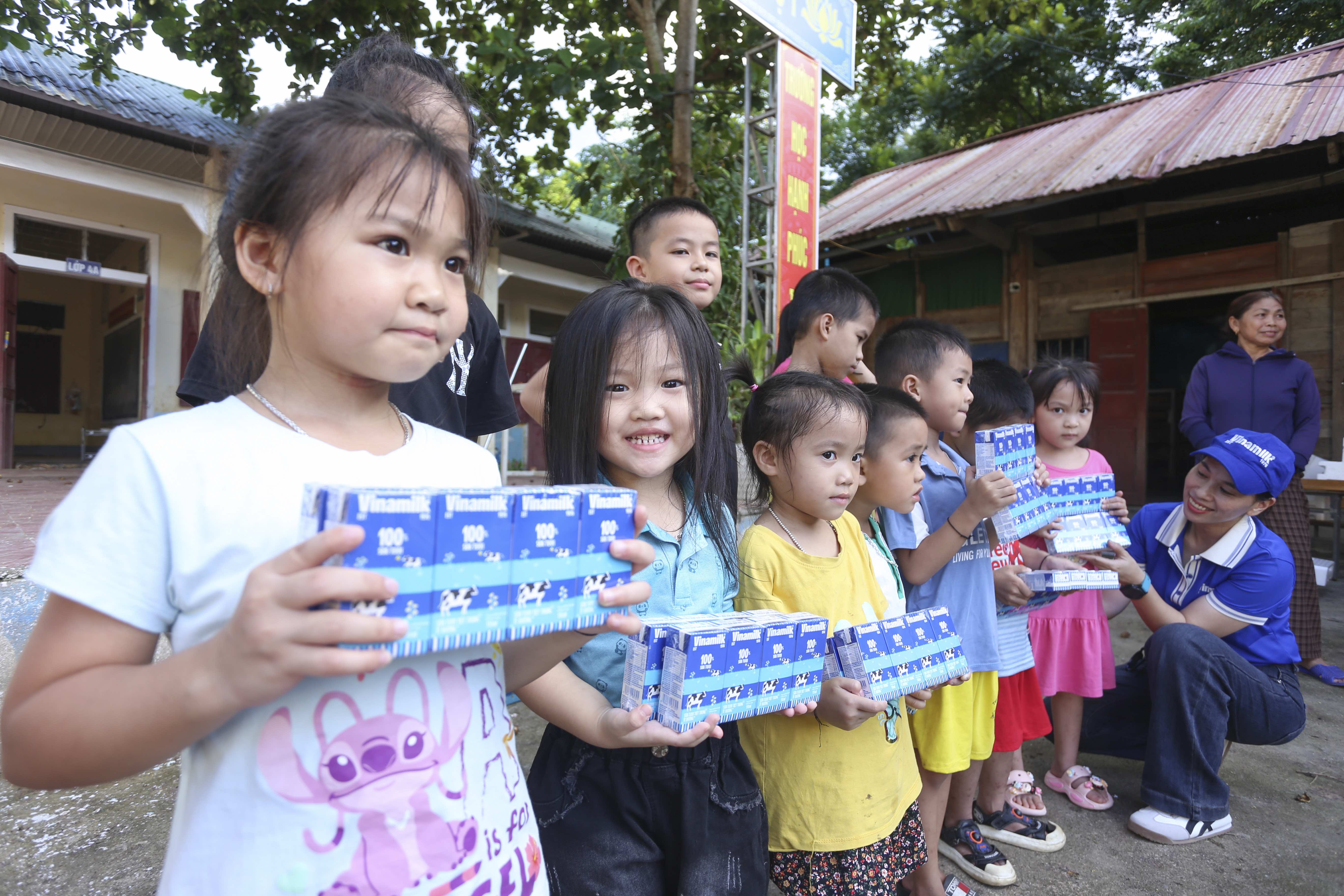 Đoàn công tác cứu trợ của Vinamilk đã kịp thời có mặt, mang theo 500 thùng sữa và gần 400 phần quà gồm balo, vở, bút và dụng cụ học tập gửi tới người dân và các em học sinh vùng lũ. Đó không chỉ là những món quà vật chất, mà còn là sự quan tâm, là tình cảm chân thành được gửi gắm từ hàng ngàn trái tim của cán bộ, công nhân viên công ty Vinamilk.