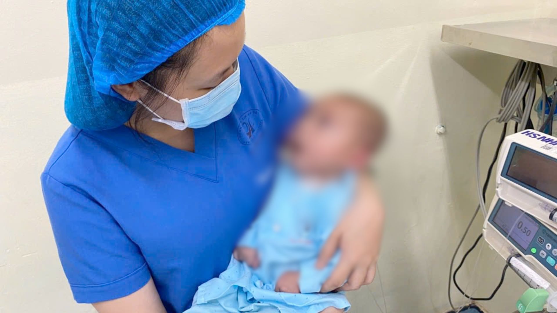 Chiều 28/5/2025, bé được chuyển đến Bệnh viện Tim Hà Nội trong tình trạng nguy kịch, tím tái nặng, khó thở, chỉ số bão hòa oxy chỉ còn 60%. Qua thăm khám và siêu âm tim chuyên sâu, các bác sĩ xác định bé mắc ba dị tật phức tạp, đảo gốc động mạch, thông liên thất và còn ống động mạch, đây là những dị tật tim bẩm sinh nguy hiểm, nếu không can thiệp kịp thời có thể dẫn đến tử vong.